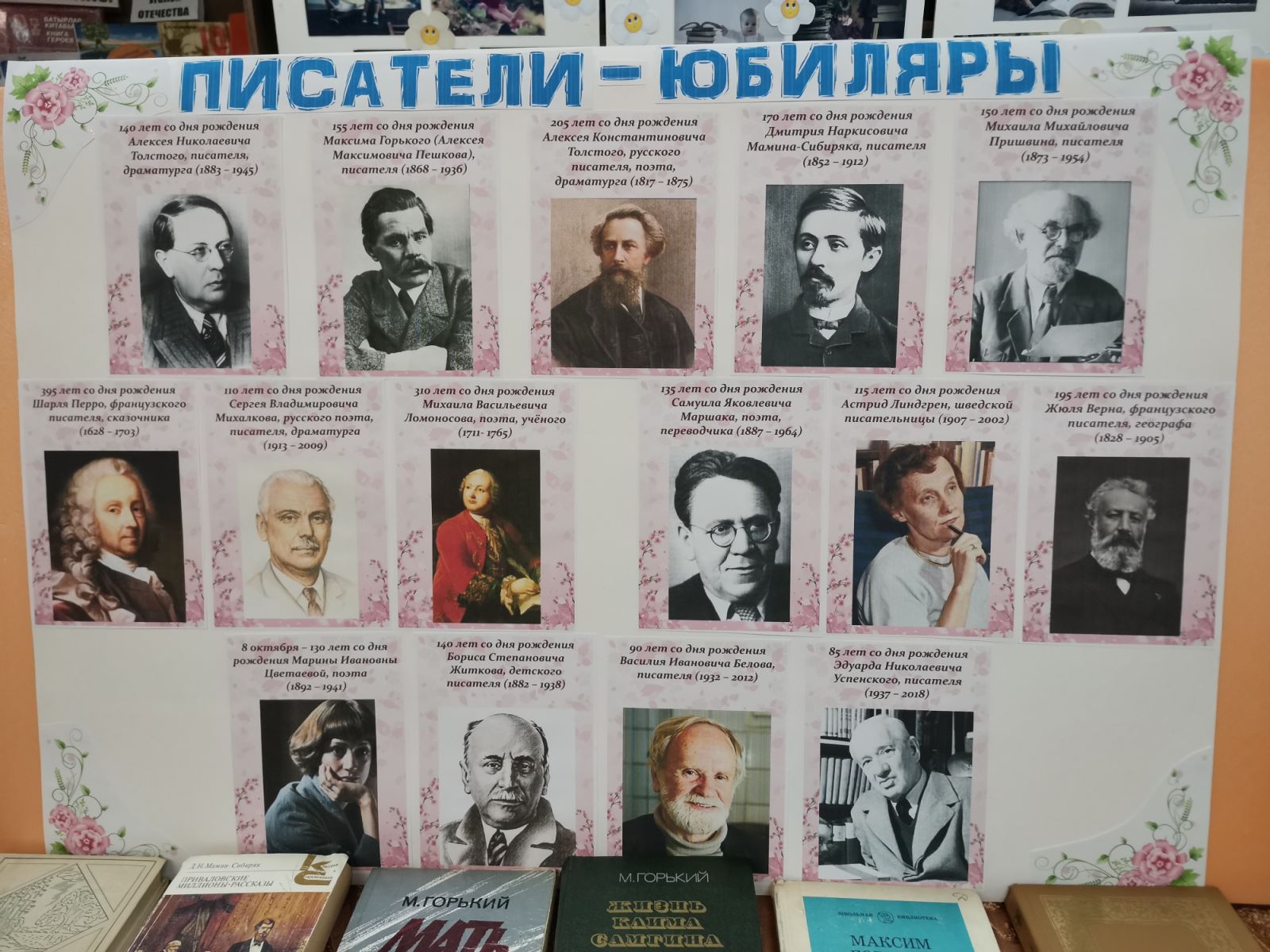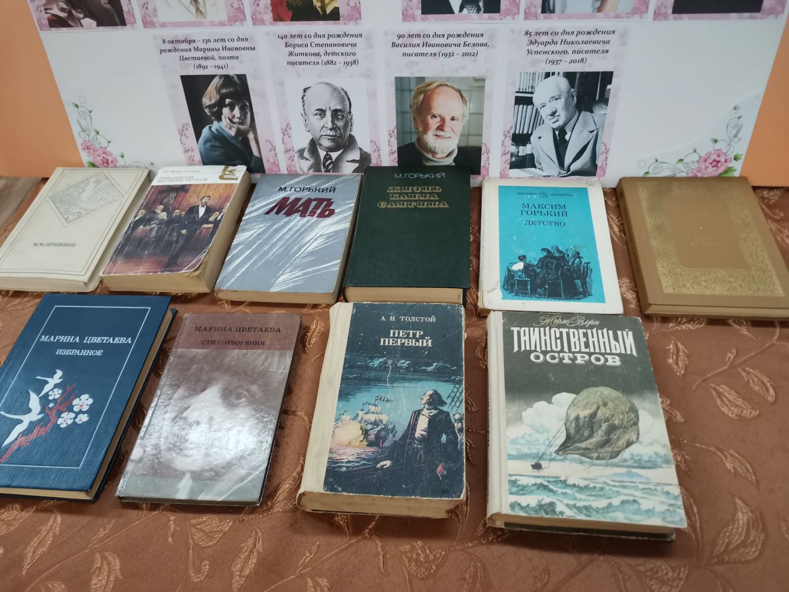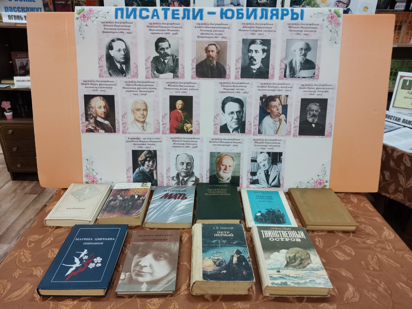 Выставка книг "Писатели-юбиляры" 11.10.2023