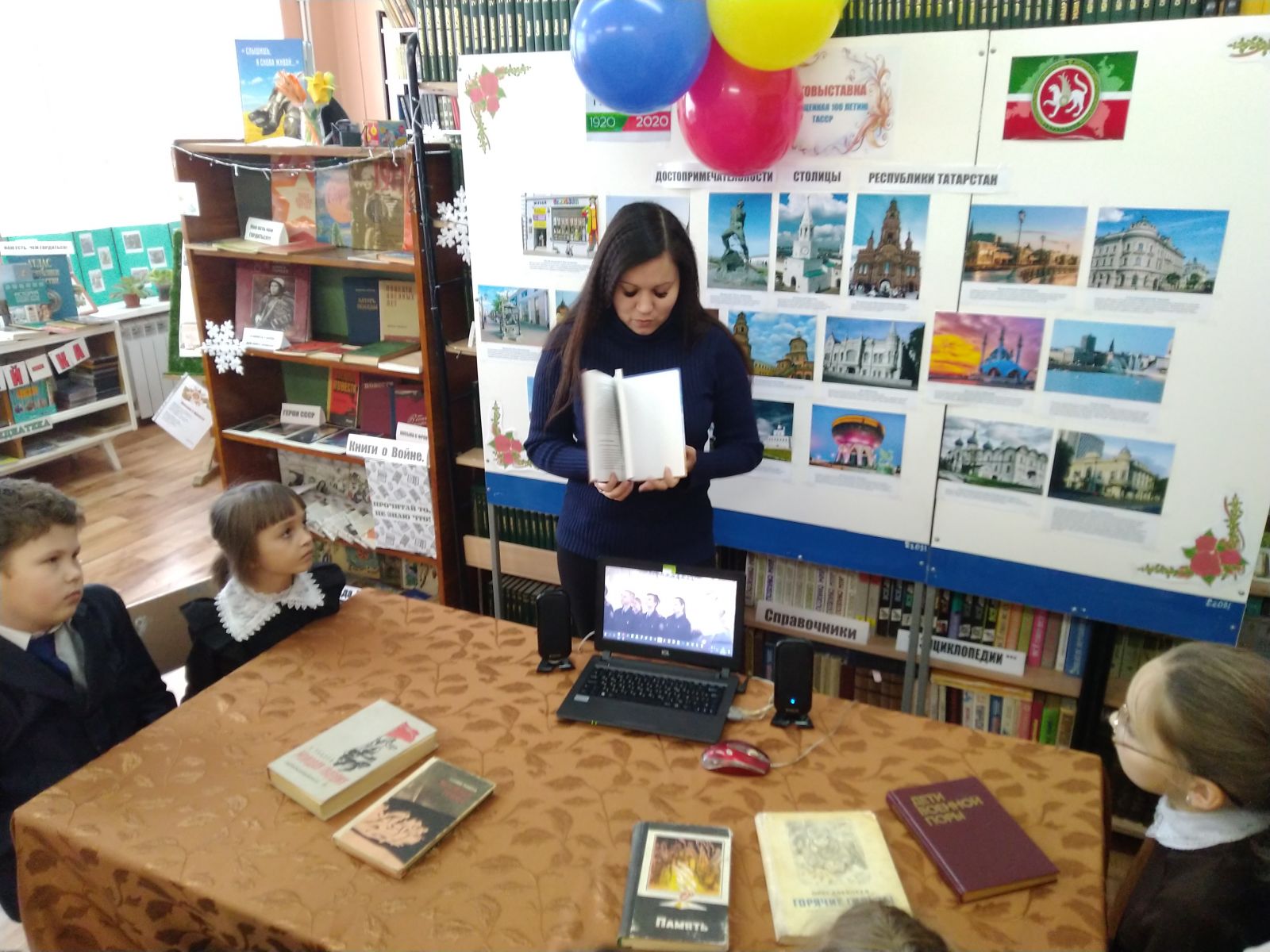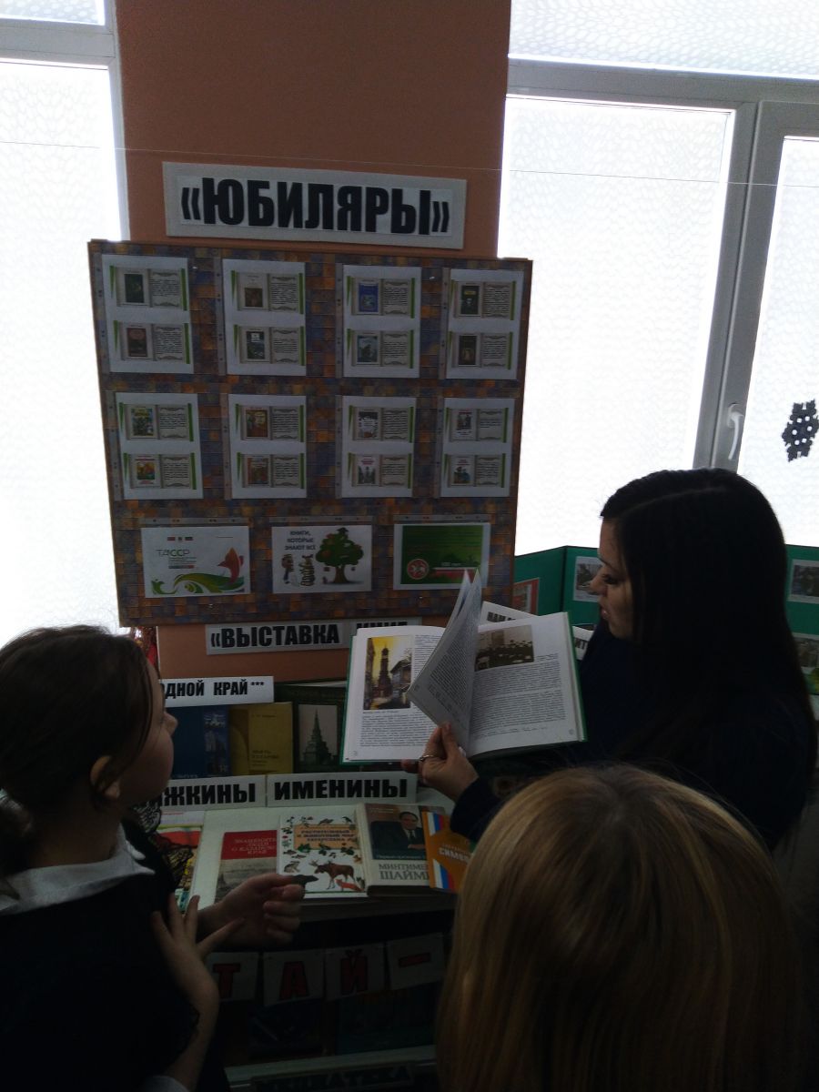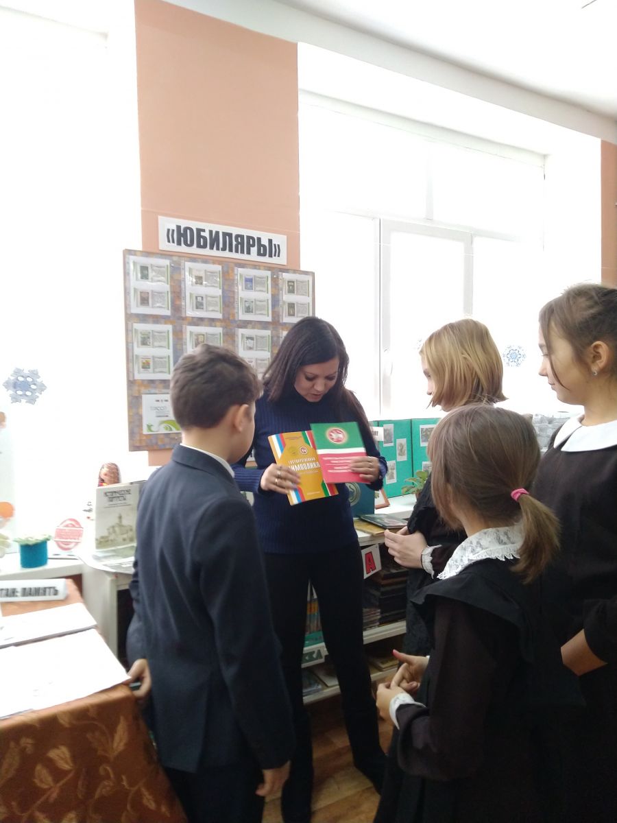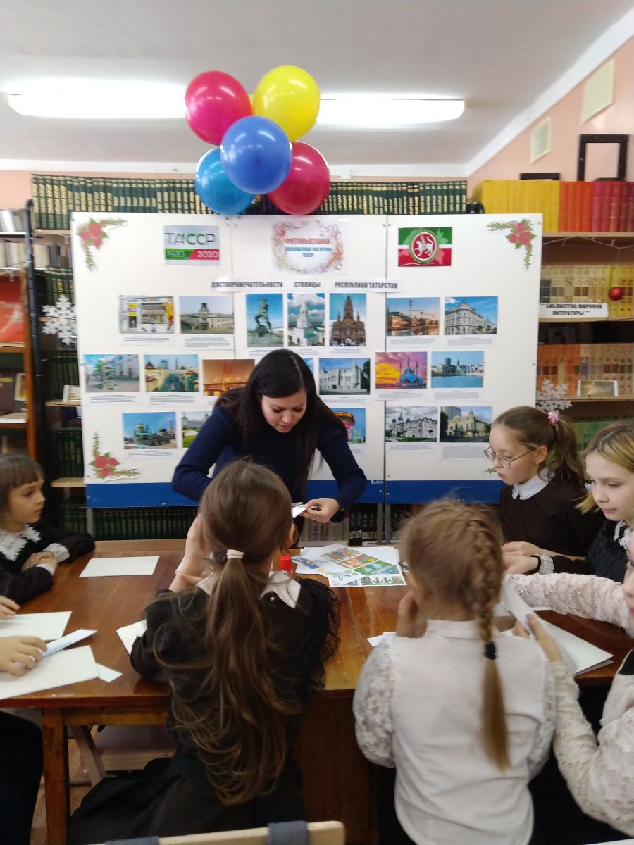 В школьной библиотеке с помощью фотовыставки ученики путешествовали по культурным учреждениям Казани, побывали в Булгаре, Биляре, Раифском монастыре и на острове Свияжск. Просмотрели интересный фильм об истории образования ТАССР. Библиотекарь познакомила учеников с книжной иллюстрированной выставкой «Родной край», в завершении ученики с удовольствием выбрали книги для домашнего чтения. -
