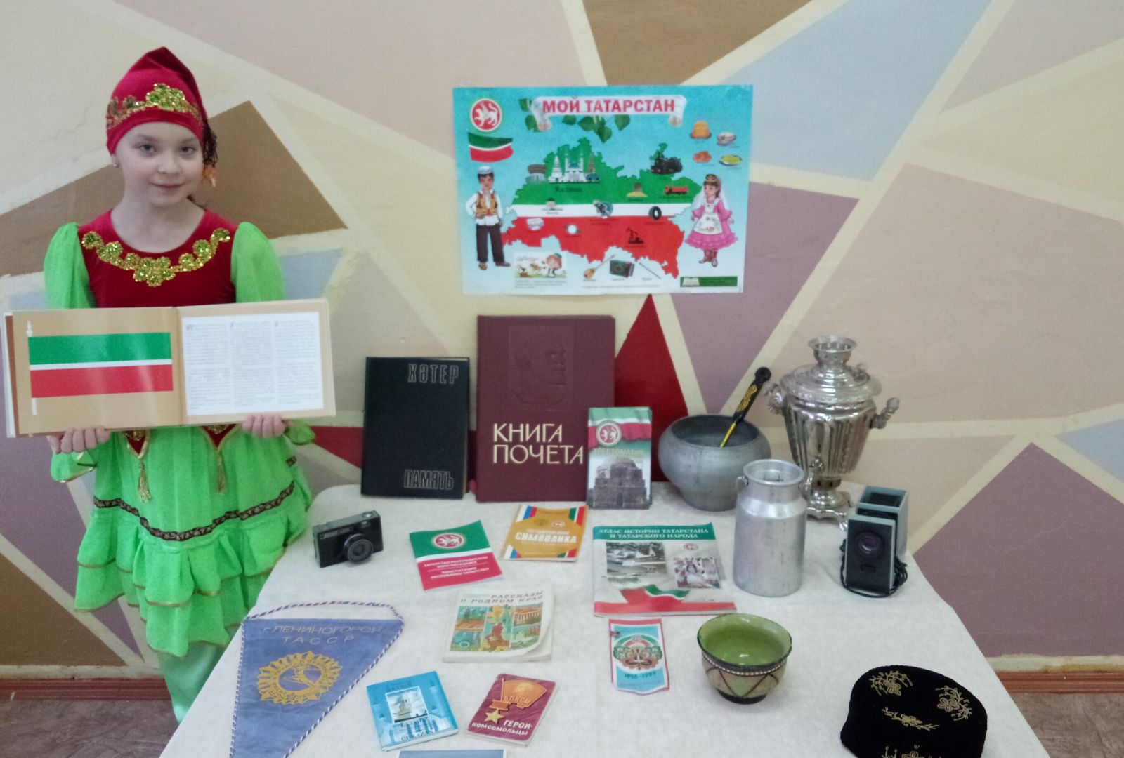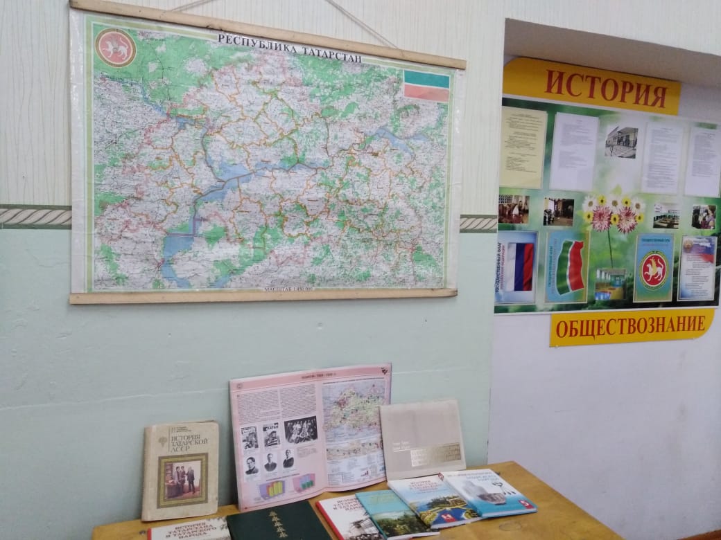 В рекреации школы оформлена тематическая выставка музейных экспонатов. В классах — книжные полки с историей и символикой Республики, стенды «Наша Родина». В школьной библиотеке находится фотовыставка посвященная 100-летию образования ТАССР и иллюстрированная выставка книг «Родной край».