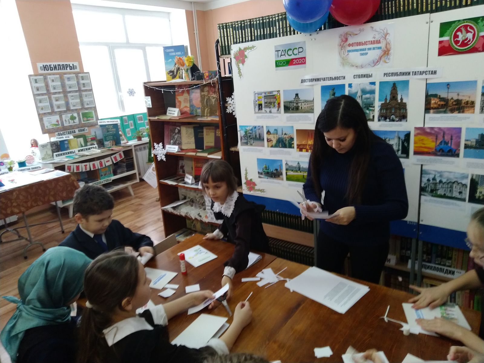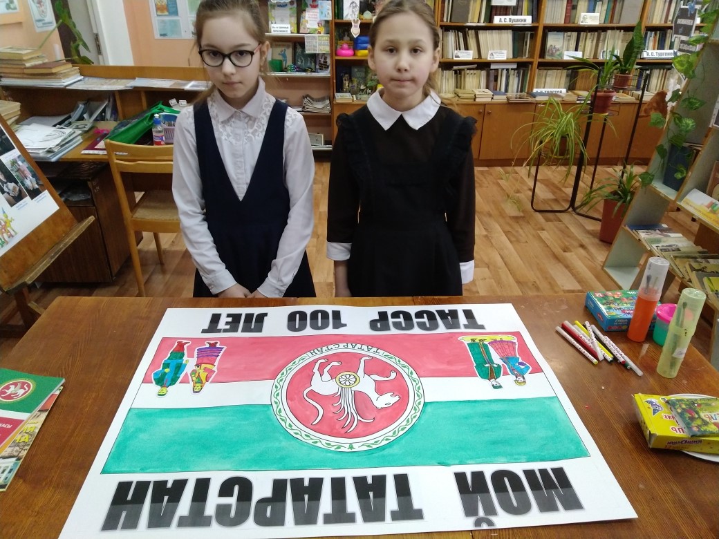 В 2020 году исполняется 100 лет со дня образования ТАССР. В школьной библиотеке учащиеся четвертого класса совершили путешествие в прошлое Татарстана на историческом экспрессе «Рождение Республики» и окунулись в события столетней давности.1917–1920 годы – время боли, страха, смуты и неопределенности. В стране голод, нищета, разруха, идет гражданская война, вспыхивают народные восстания. Вот в такой сложной обстановке рождалась молодая республика, об этом говорилось на творческом занятии.В заключении занятия учащиеся выполнили творческую работу, плакат посвященный 100-летию образования ТАССР. -