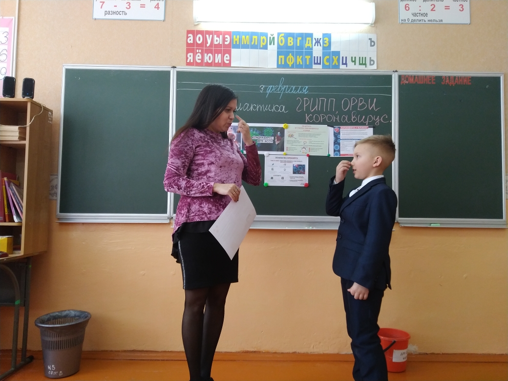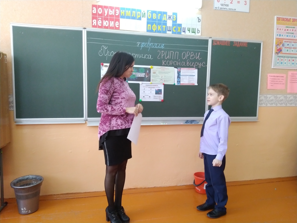 Во втором классе библиотекарь провела беседу по профилактике гриппа и ОРВИ. Рассказала о новом вирусе, который появился у нас в январе – это Коронавирус.В ходе беседы, учащиеся узнали о строении данного вируса, путях его распространения и мерах профилактики.Школьники узнали, что при признаках заболевания нужно обязательно использовать медицинскую повязку и менять ее не реже чем каждые 2 – 3 часа. При высокой температуре незамедлительно вызывать скорую помощь.На уроке узнали, как правильно носить повязку и как беречь себя от заражения данного вируса.В заключении ребята поставили перед собой цель – быть здоровыми, для этого они будут регулярно и тщательно мыть руки с мылом, одеваться по погоде, заниматься спортом и кушать больше овощей и фруктов, содержащих витамины. -