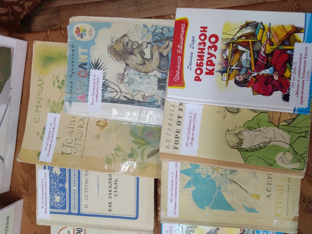 Библиотека – это то место, где по-настоящему отдают дань уважения книгам – юбилярам российских и зарубежных авторов. Всем, кому интересны юбилейные книжные даты 2019 года, школьная библиотека предлагает посетить книжную выставку-календарь «И у книг бывают юбилеи». В экспозицию вошли много книг, среди них есть произведения, которые заслуживают особого внимания. Это книга «Приключения Робинзона Крузо» Д.Дефо – 300 лет. 210 лет назад впервые пришла к читателю книга "Басни" Ивана Андреевича Крылова; кстати, знаменитый баснописец и сам юбиляр – мы отметили 250 лет со дня его рождения. С первых дней размещения на абонементе выставка вызывает интерес. Это действительно «золотая полка» книг – любимых книг, которые хочется перечитывать. А значит, у всех у нас есть повод снять с полки любимую книгу и насладиться общением с мудрым и добрым собеседником. Приятного чтения! Подробно познакомиться с выставкой вы можете в школьной библиотеке. Добро пожаловать! -