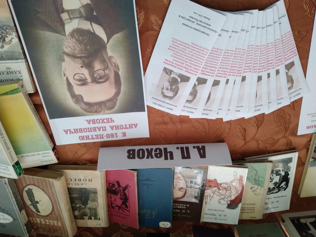 Книжная выставка «Созвучен разным поколеньям» посвященная 160– летию со дня рождения А. П. Чехова. Антон Павлович Чехов – один из самых читаемых писателей.…Однажды Чехов сказал писательнице Щепкиной-Куперник: «Меня будут читать лет семь, семь с половиной, а потом забудут».