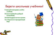 С 13 по 30 ноября в школе проходит акция «Береги учебник».Помни:«Учебник твой друг – без него, как без рук».Мы привыкли к книге, редко думаем о ней, как о замечательном сокровище, и бывает, что не всегда ценим и бережем ее. Книга – источник знаний, бодрости духа. Учебник- это тоже книга, только книга учебная. Как же живется ей?Дорогие ребята!Дают вам учебники в школах бесплатно.И это, конечно же, очень приятно.Но в этой приятности, что неприятно:Весною учебник сдается обратно…Памятка.«Как обращаться с учебником»:· Оберни учебник бумагой или вложи его в специальную обложку.· Не загибай страницы учебника, пользуйся закладкой.· Не перегибай учебник: от этого вырываются страницы.· Не закладывай ручку или карандаш в учебник: от этого ломается переплет.· Не пиши и не рисуй в учебниках. Помни: учебник – это общественная собственность.· Не бери учебник грязными руками и не читай его во время еды.· Клади учебник только на чистый стол или парту.· Не читай учебник на солнце: солнечные лучи обесцвечивают обложку и страницы книги.· Перевертывая страницу, держи её за верхний угол.Правила обращения с книгой.1. Книга не должна мокнуть, от этого коробятся страницы, разбухает и расслаивается переплет.2. Когда идешь в библиотеку. положи книгу в пакет, который защитит её от дождя.3. Книга боится рассыпаться на отдельные листочки. Не бросай раскрытую книгу вверх переплетом, не загибай страниц.,, пользуйся закладкой.4. Если хочешь нарисовать что-то или записать, когда прочитал книгу, сделай это в альбоме или в специальной тетради.5. Не разбрасывай книги – ты можешь их потерять, их может погрызть собака, разорвать страницы котенок. -