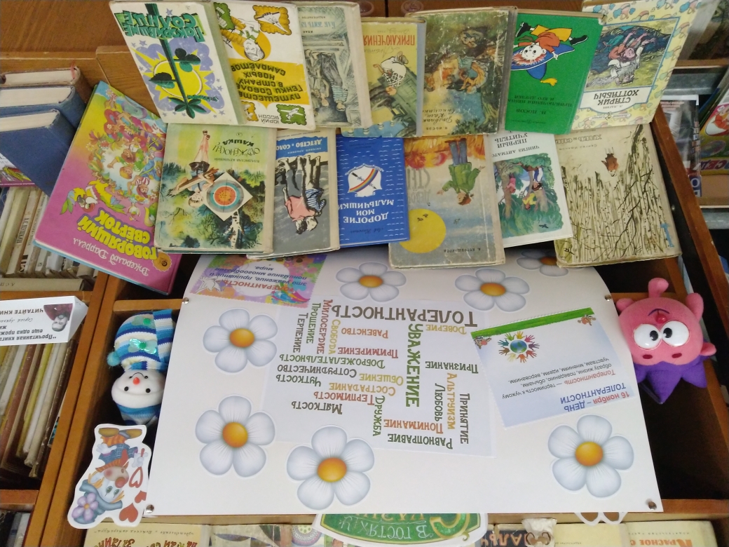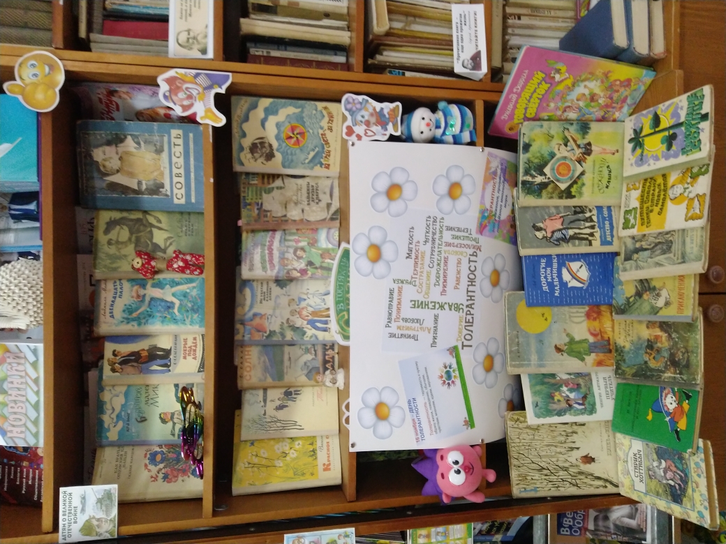 В нашей школьной библиотеке проходит книжная выставка «Жить в мире с собой и другими». Также состоялась беседа, в ходе которой, ребята получили представление о толерантности, определили основные черты толерантной личности, правила поведения в обществе, убедились в необходимости уважения друг к другу, к обычаям, традициям и культуре других народов.
