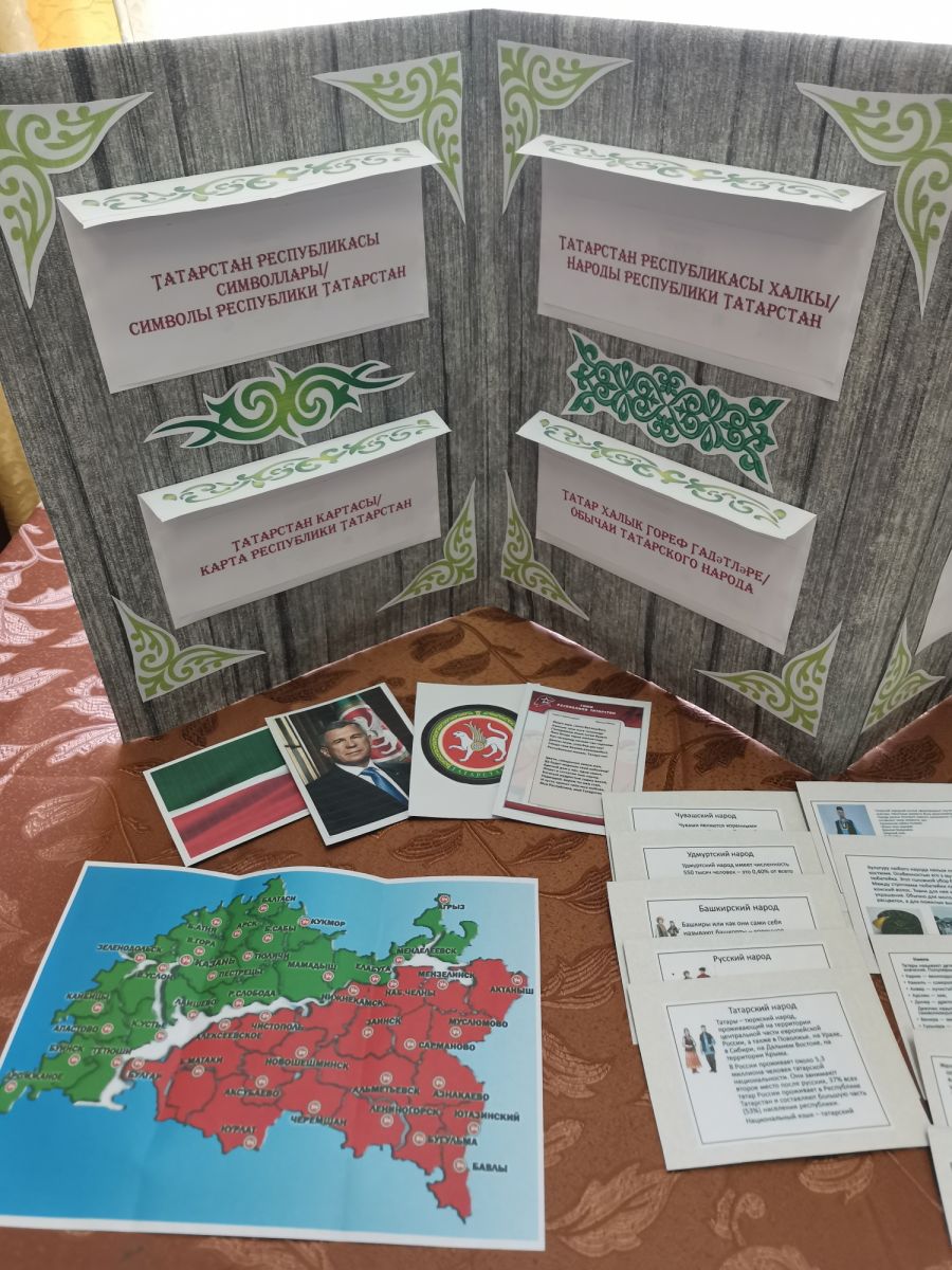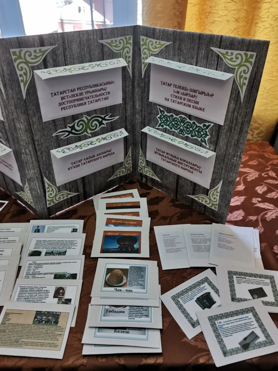 В школьной библиотеке оформлен лепбук "Год национальных культур и традиций". В нем вы можете ознакомиться с символикой РТ, обячаями и традициями татарского народа, национальной кухней, музыкальными инструментами и многим другим. -