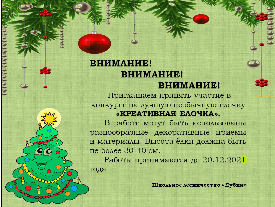 Воспитанниками школьного лесничества «Дубки» с 27 сентября по 9 октября в школе был проведён конкурс из лесных материалов «Осенняя фантазия». В конкурсе приняли участие 44 учащихся. Победители и участники были награждены грамотами и дипломами школьного лесничества. -