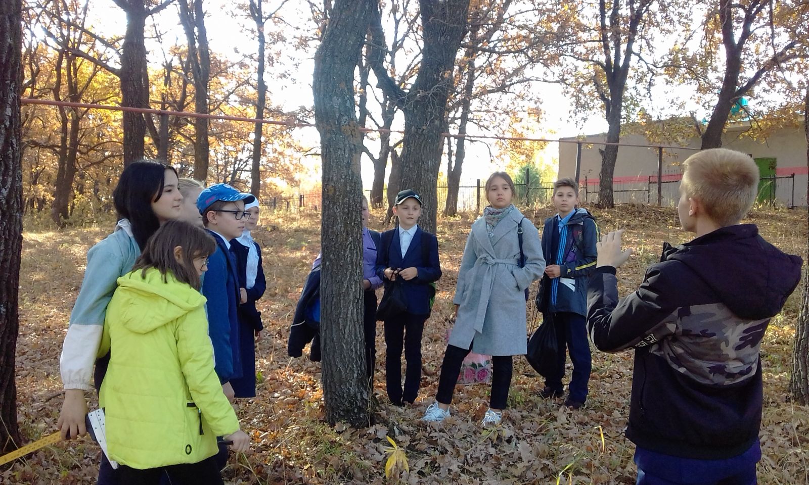29 сентября воспитанники школьного лесничества “Дубки” ходили на экскурсию в лес вблизи школы. Тематика экскурсии «Краски осени. Листопад – явление природы». Староста нашего лесничества, ученик 9 класса Мустафин Ленар рассказал о лесной таксации: простейшие угломерные приборы и инструменты, применяемые при отводе лесосек (буссоль, мерная лента); инструменты, применяемые для измерения древесного ствола и насаждения (мерная вилка, высотомер, полнотомер, возрастной и приростной бурава).Учащиеся беседовали о разных видах деревьев, искали ответы на свои вопросы, определились темами проектных работ. -