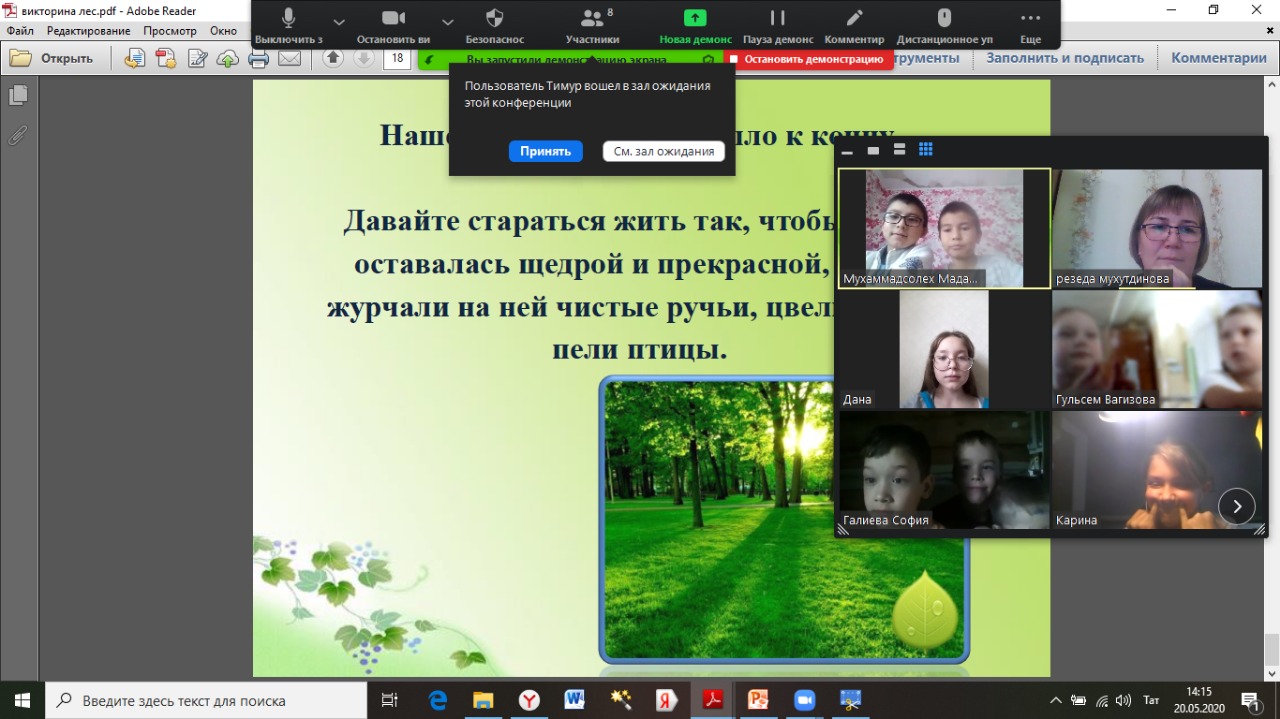 20 мая в рамках деятельности кружка «Школьное лесничество» (руководитель Мухутдинова Р. Ф.) была проведена онлайн - викторина «Умеете ли вы беречь лес?».
