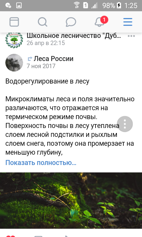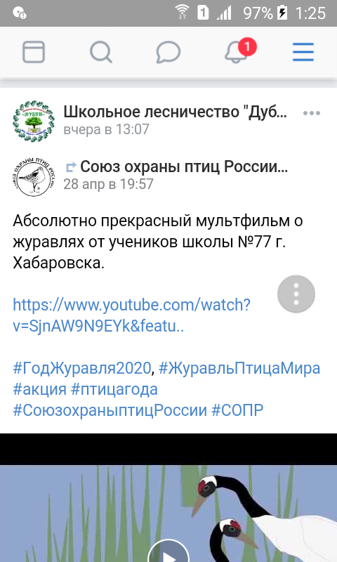 Школьное лесничество «Дубки» (руководитель Мухутдинова Р. Ф.) продолжает свою работу дистанционно. Материалы публикуются на странице лесничества в социальной сети вконтакте. За эту неделю учащиеся младших классов посмотрели мультфильм о журавлях, посвященный Году журавля; старшеклассники ознакомились с теоретическим материалом на темы: «Грунтовые воды под лесом», «Водорегулирование в лесу».