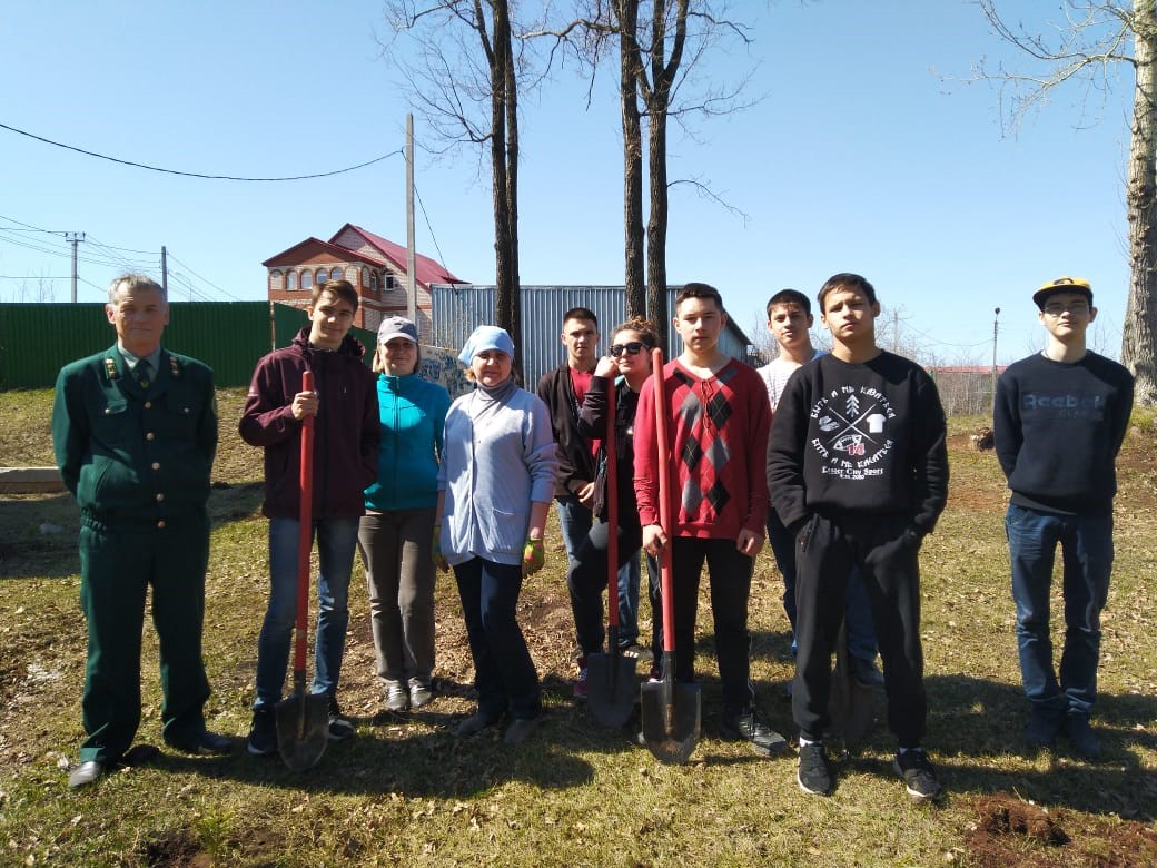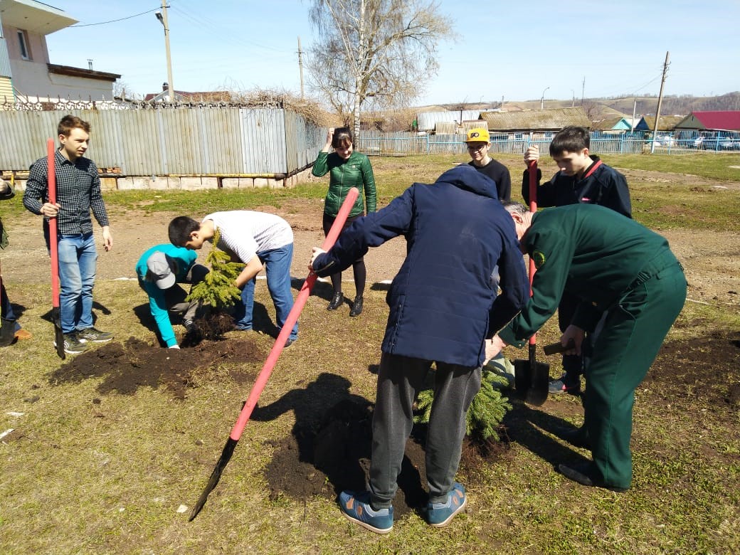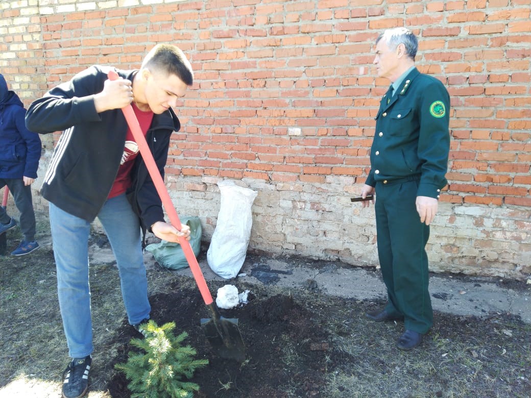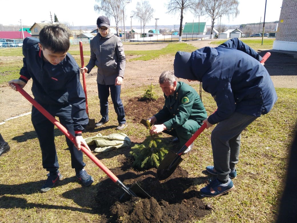 Представитель ГКУ «Лениногорское лесничество» Ралиф Харисович провёл с учащимися беседу на тему: «Посади и сохрани дерево» и продемонстрировал как правильно посадить дерево. Затем ребята школьного лесничества «Дубки» и учащиеся 9 класса, педагоги школы Аникина И.А., Мухутдинова Р.Ф., Андреева Л.М. посадили на пришкольной территории 63 ели и 10 сосен.