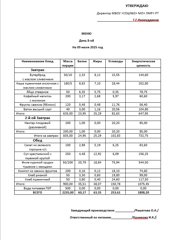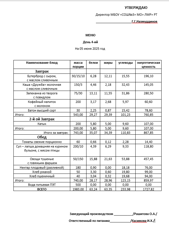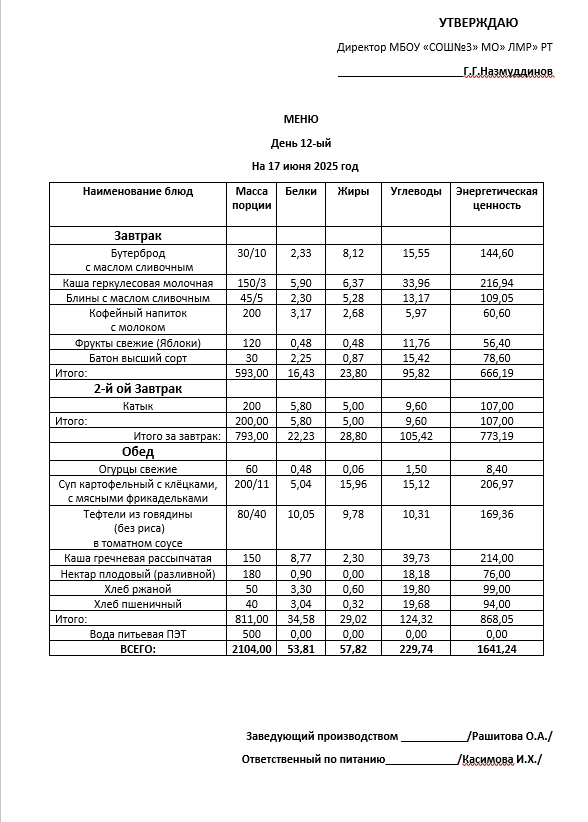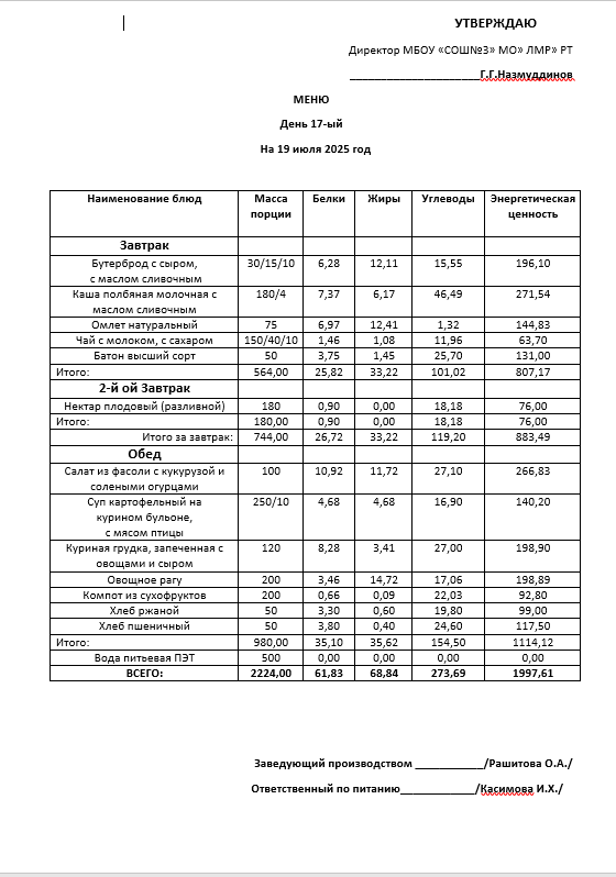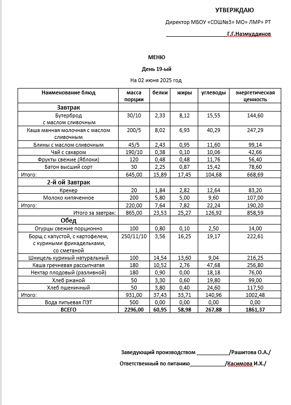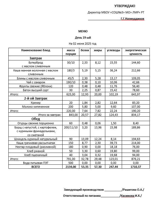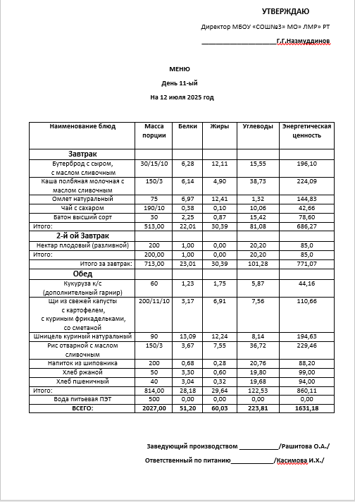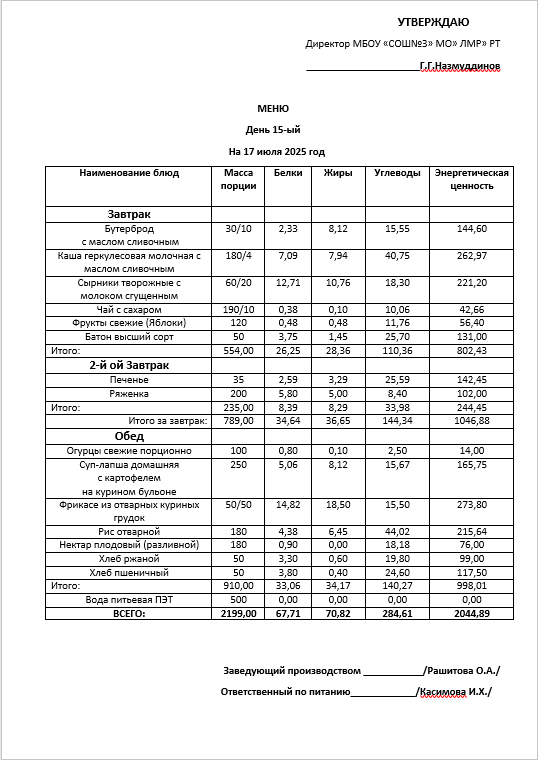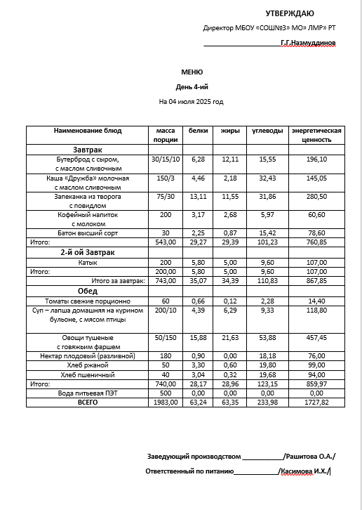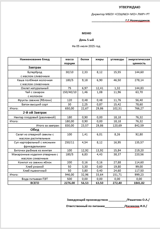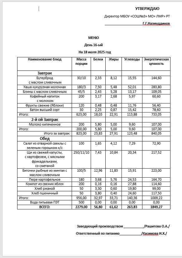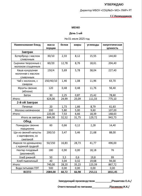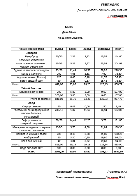 Типовое меню 2025