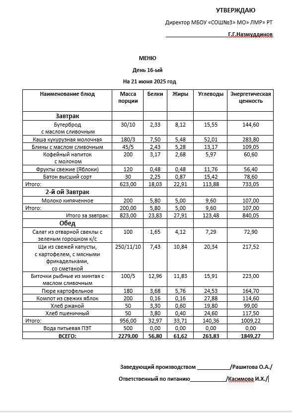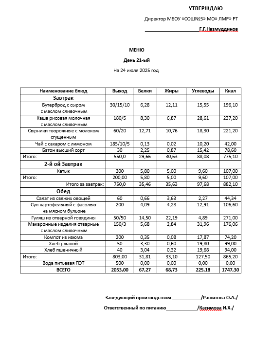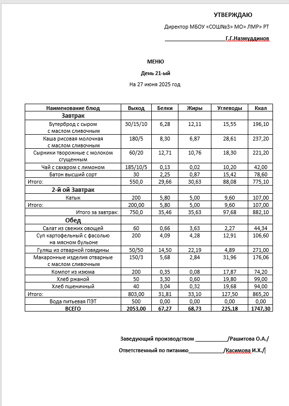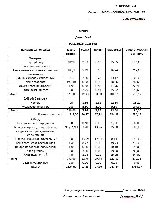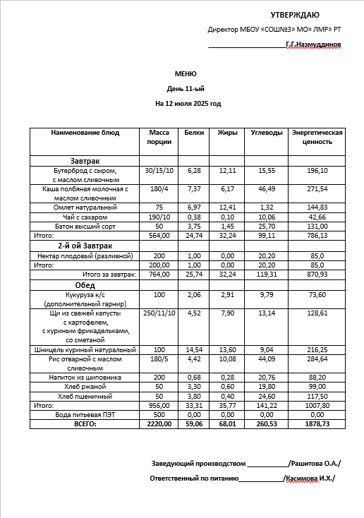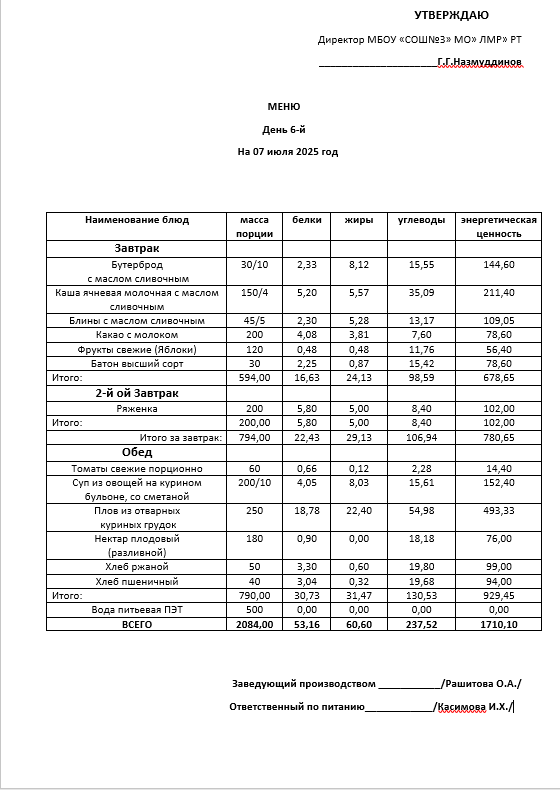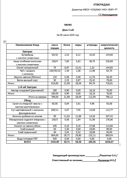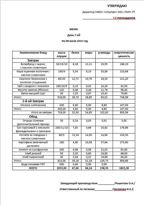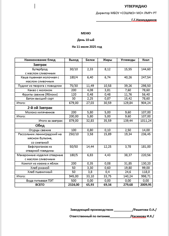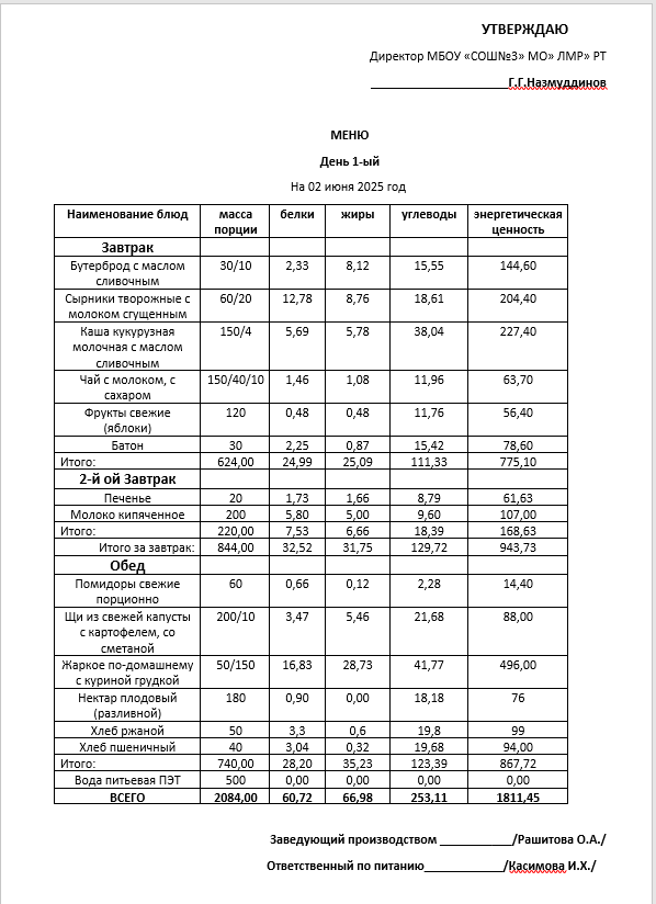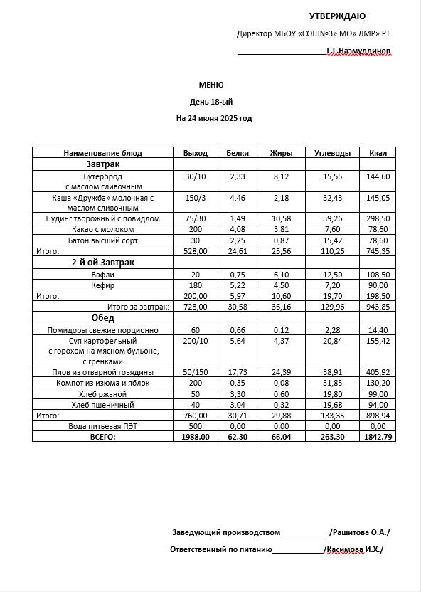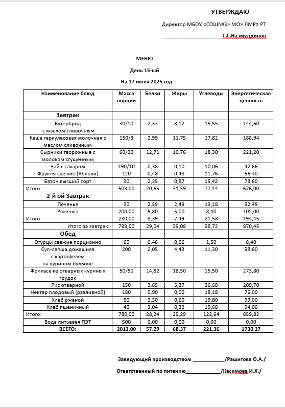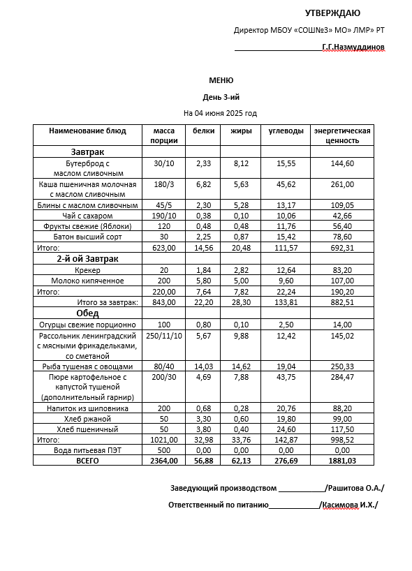 Типовое меню 2025