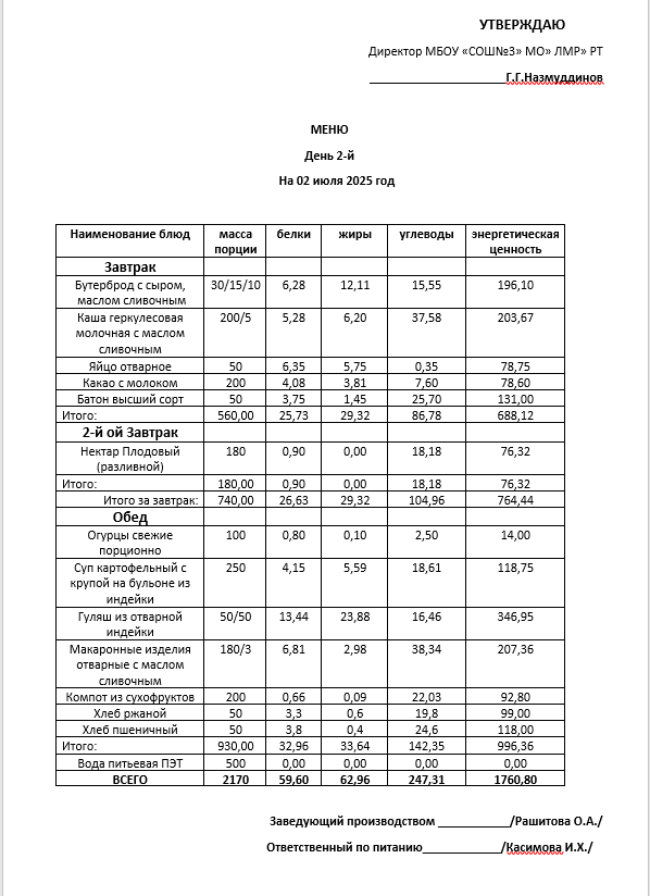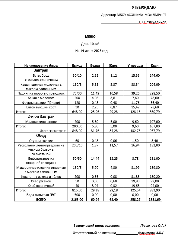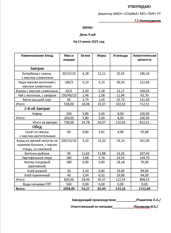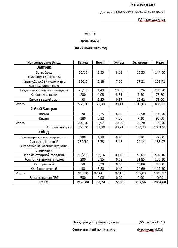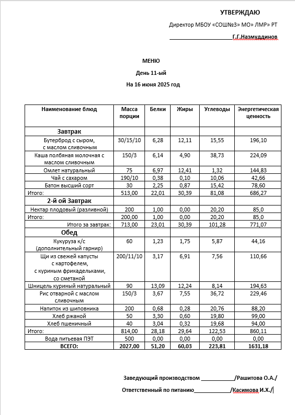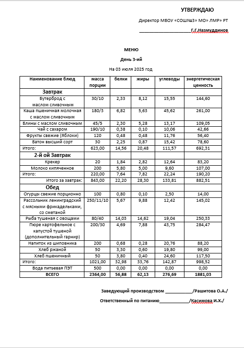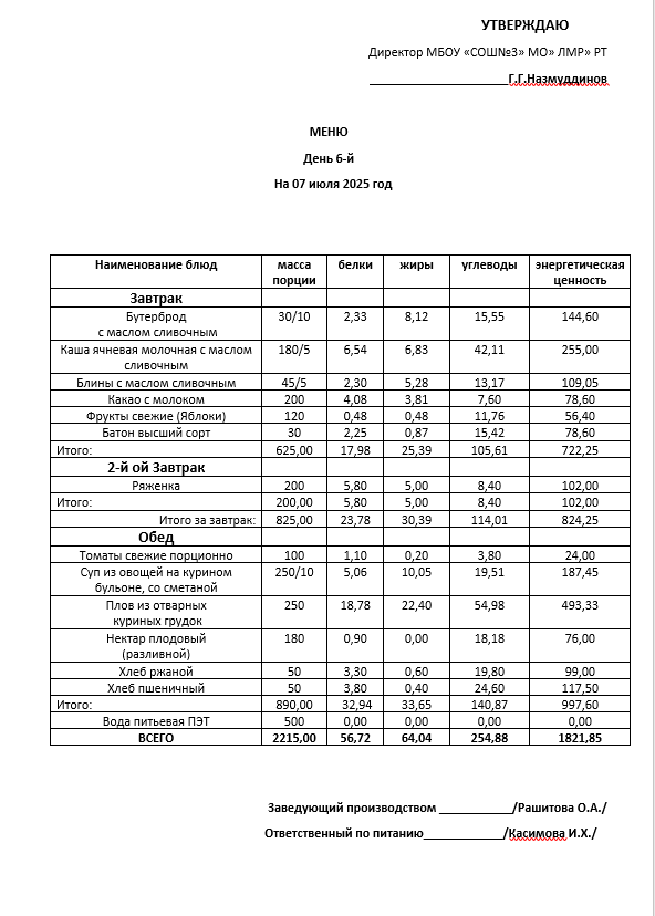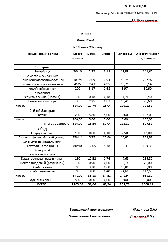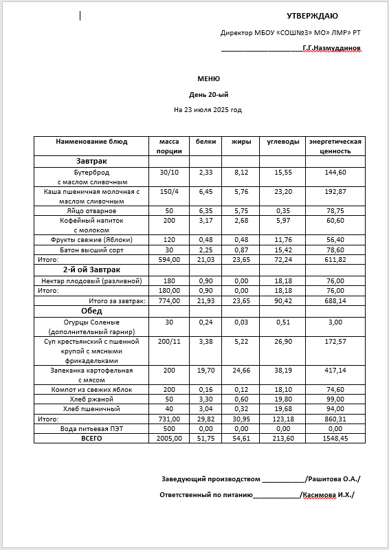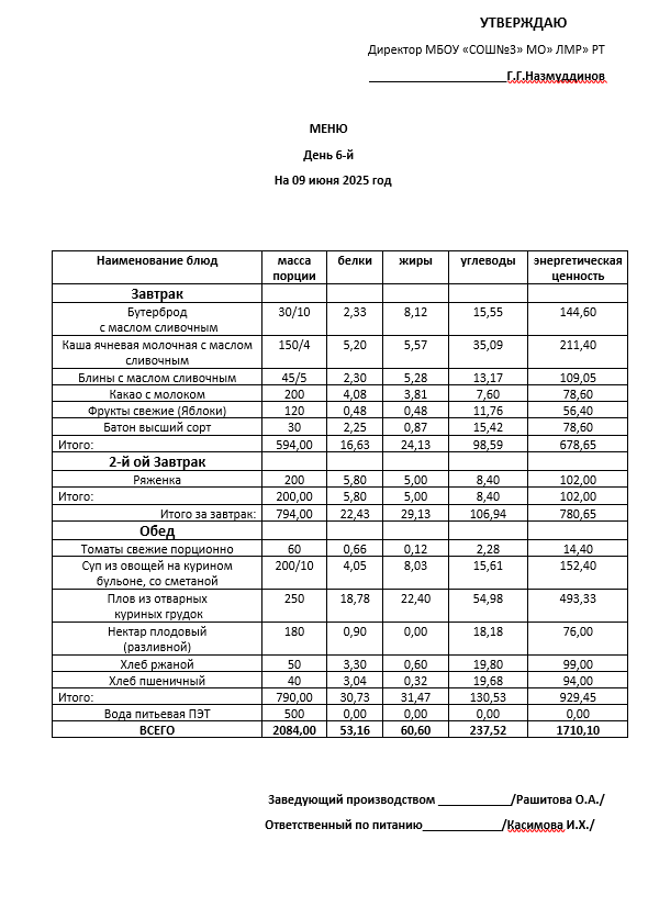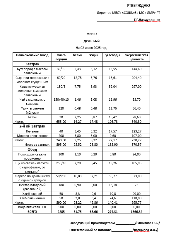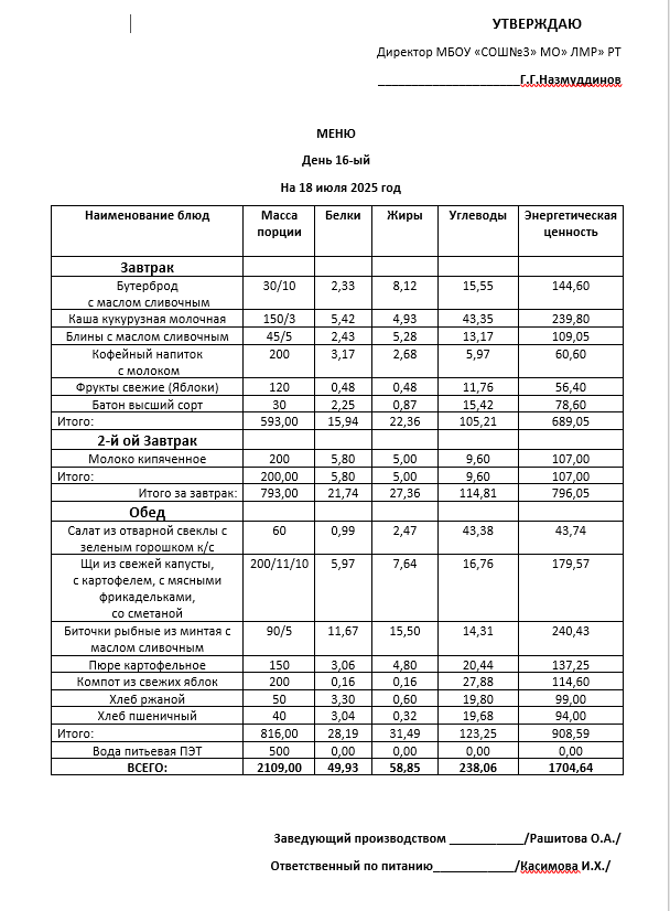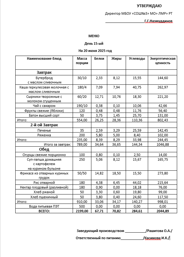 Типовое меню 2025
