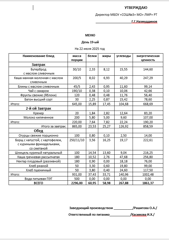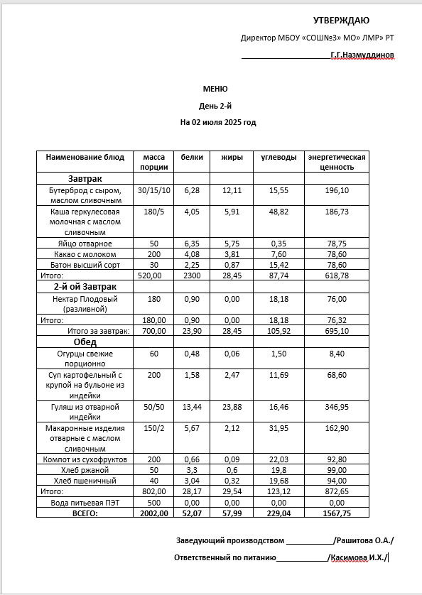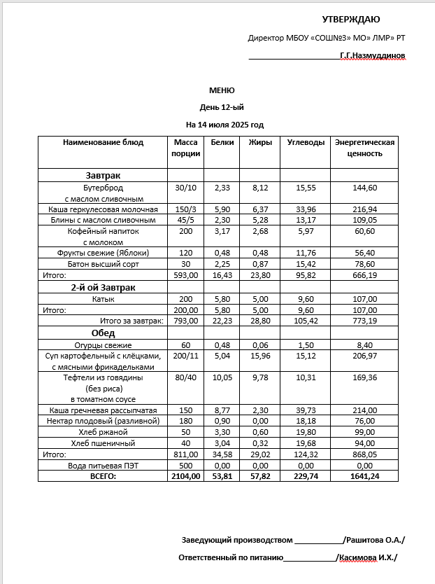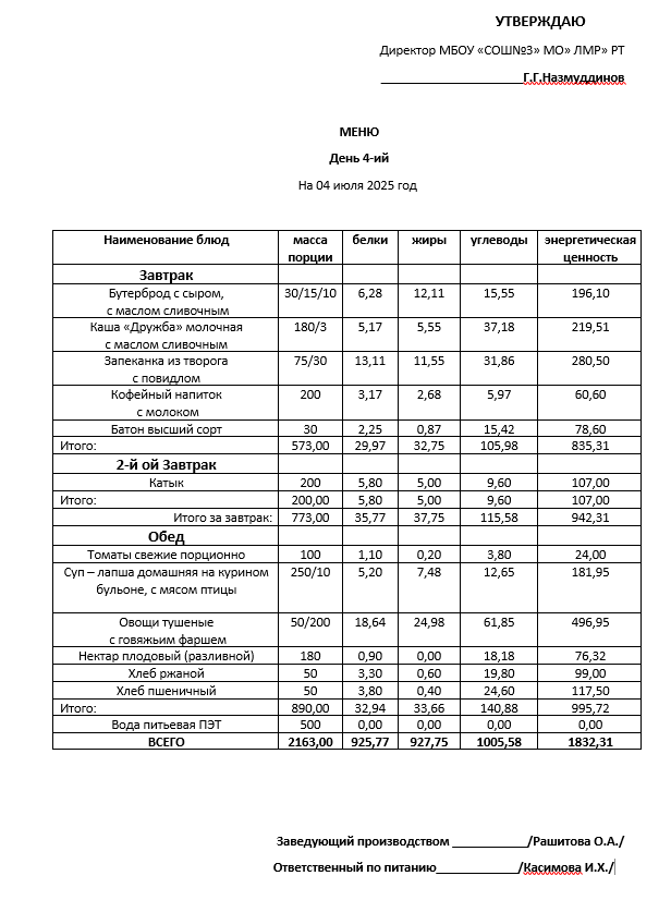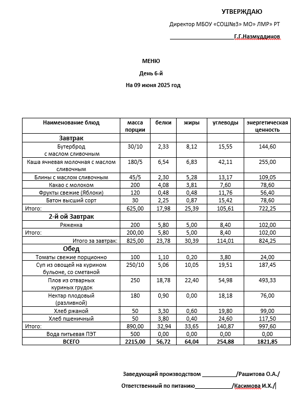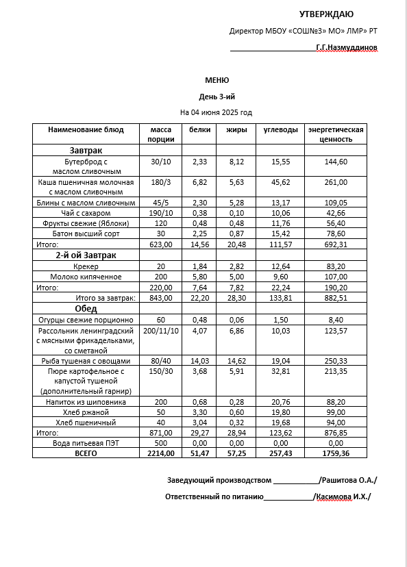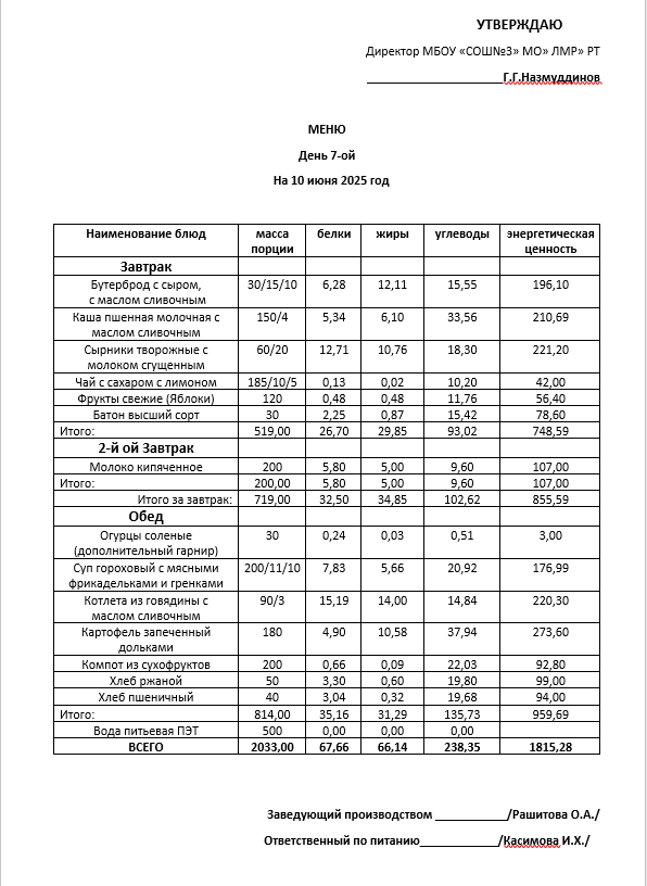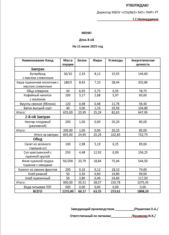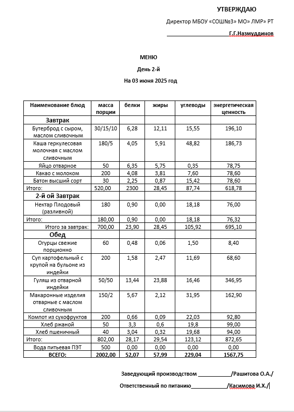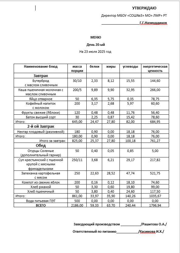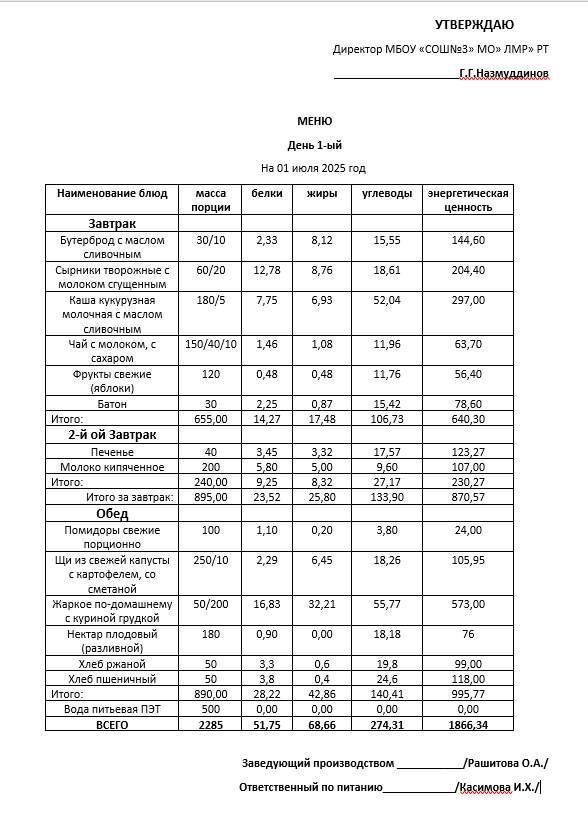 Типовое меню 2025