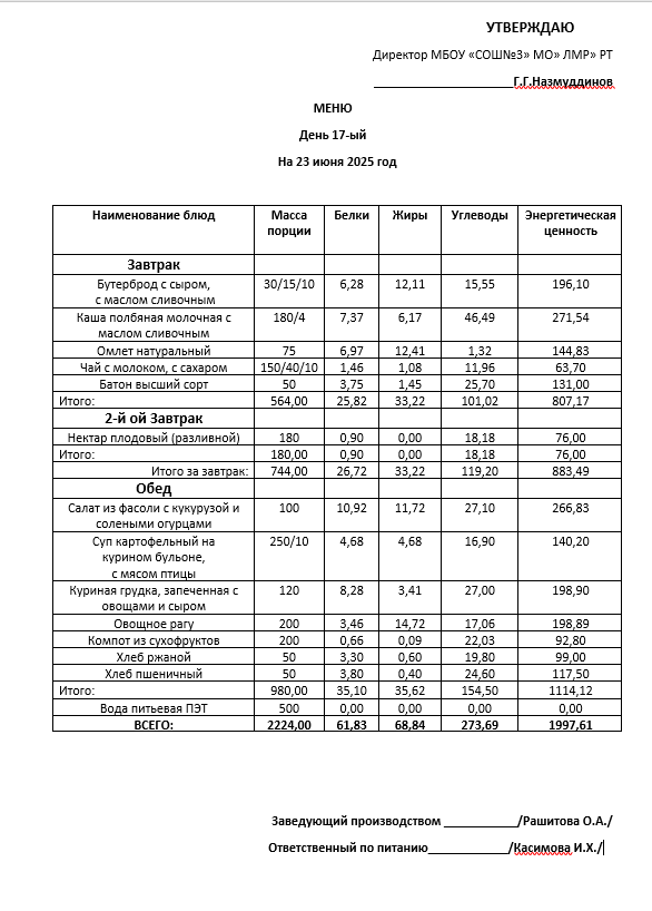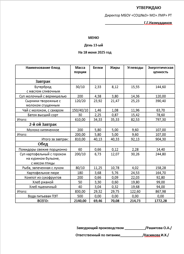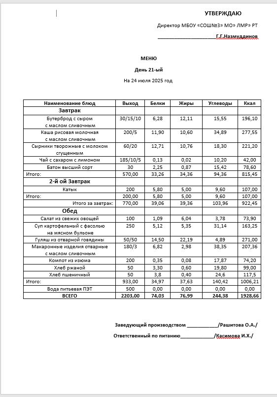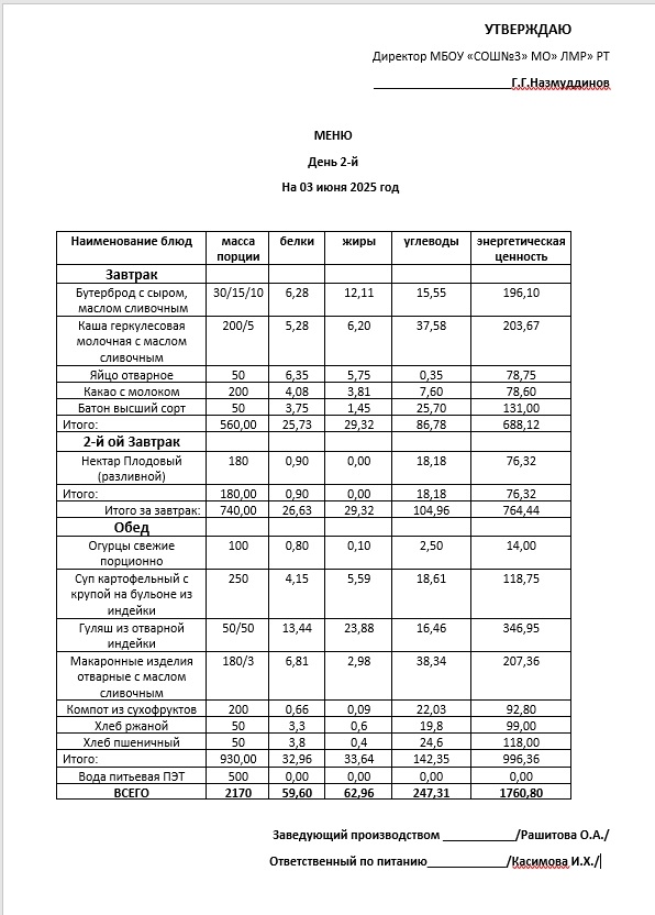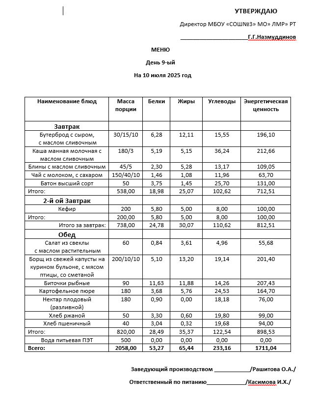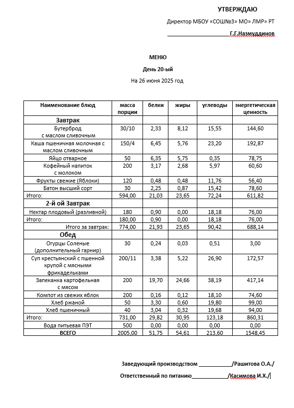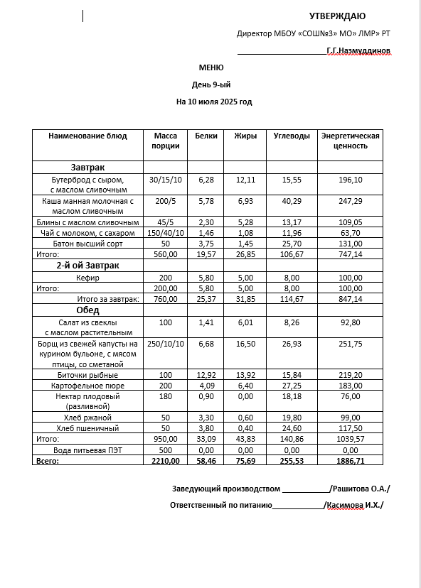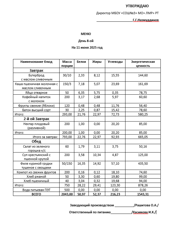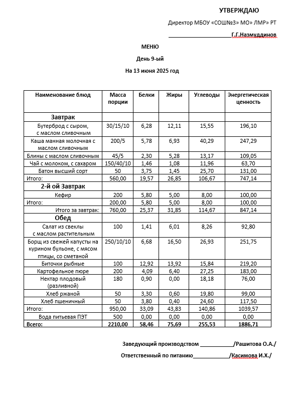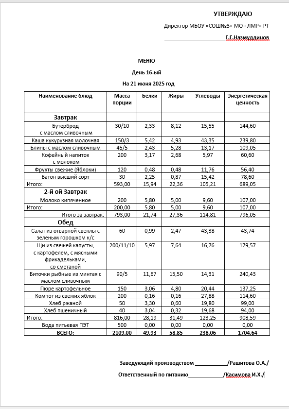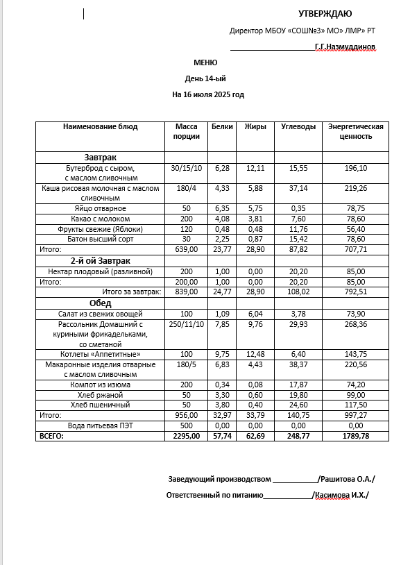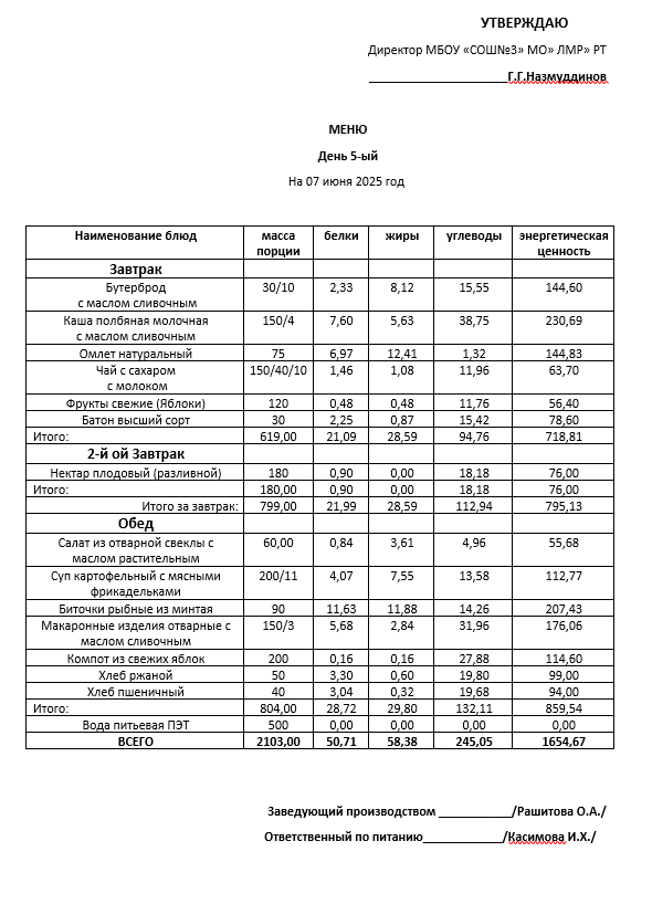 Типовое меню 2025