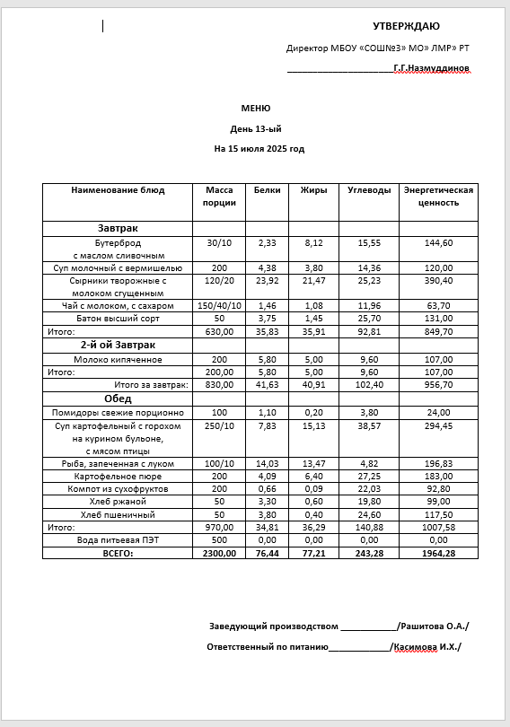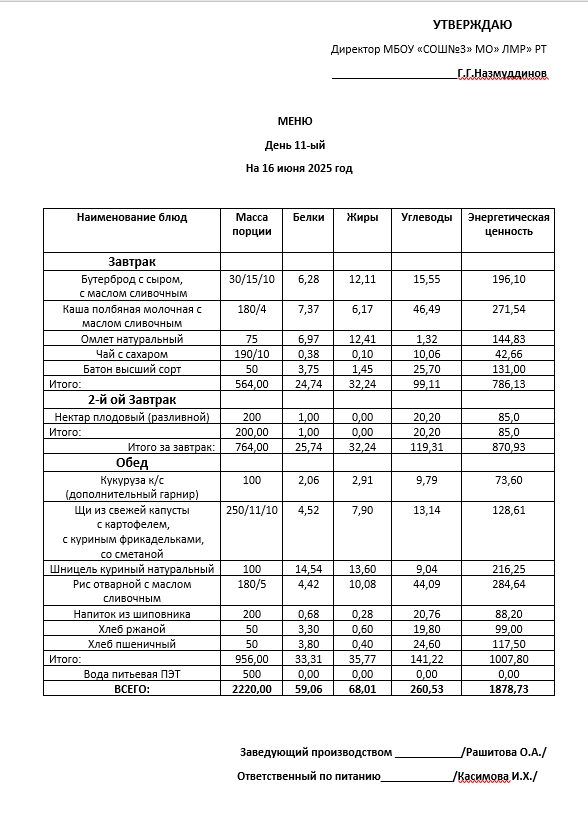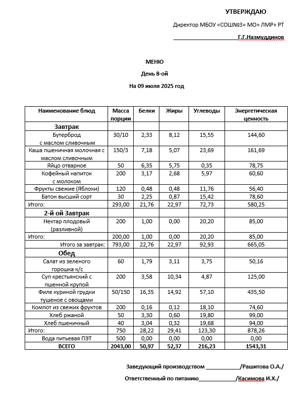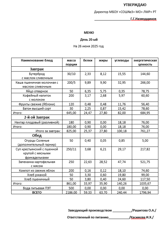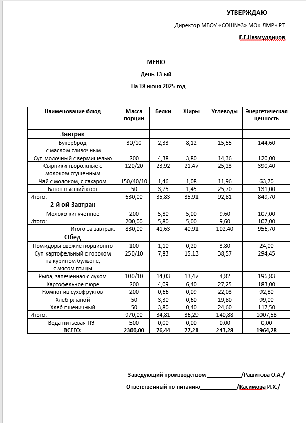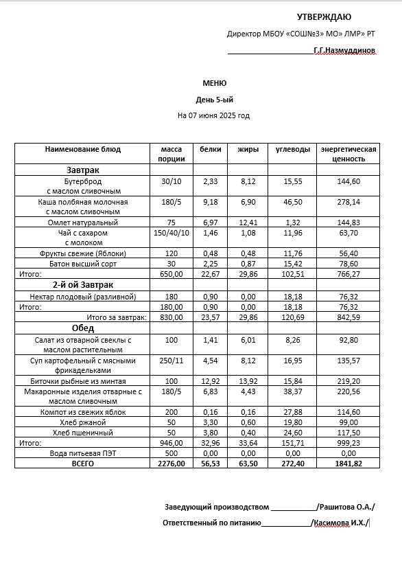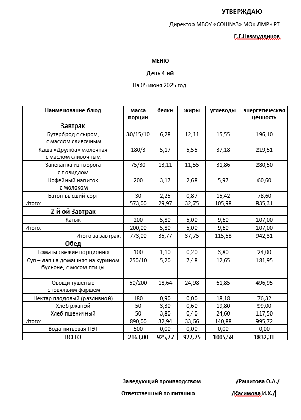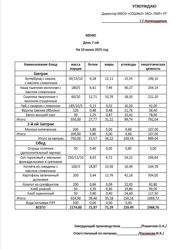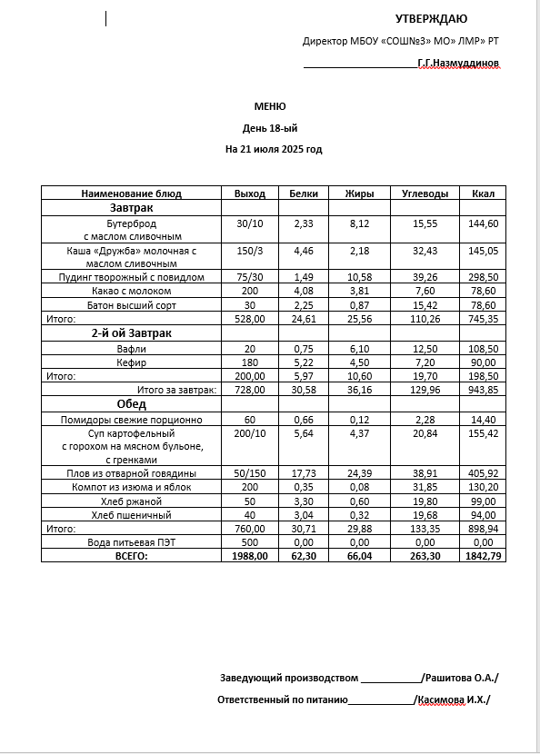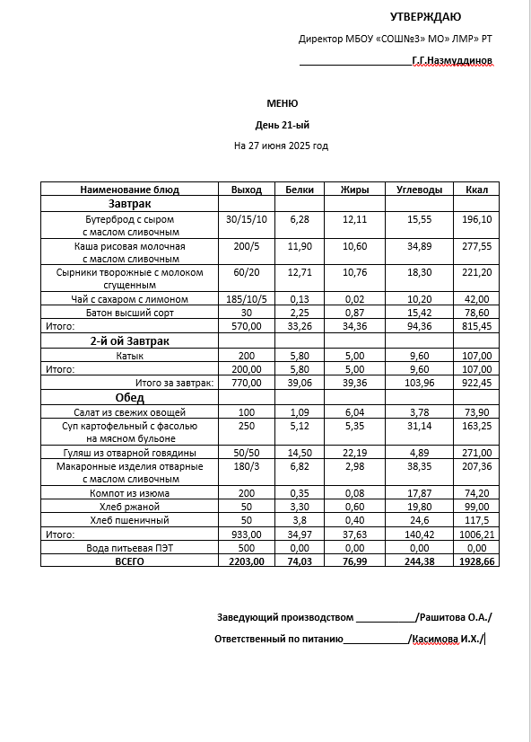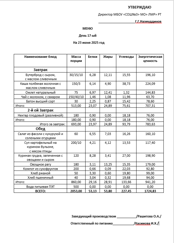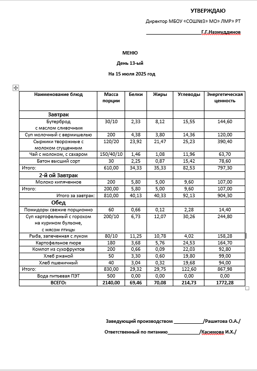 Типовое меню 2025