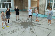 Весело проходит день в пришкольном лагере. Сегодня у нас праздник "День Нептуна". В игре обливашки выиграла команда девочек- у мальчиков не осталось сухого места. А в конкурсе рисунков водой победили мальчики.