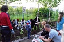 Родители и ученики 2 "Б" класса (классный руководитель Низамова Д.Г.) в процессе подготовки конкурса СПК-2 "Лучший школьный двор".