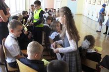 Сегодня прошел праздник "Посвящение первоклассников в пешеходы".