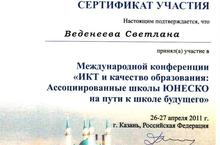 Bеденеева Светлана Анатольевна-участник Международной конференции ЮНЕСКО ИИТО и Ассоциированных школ ЮНЕСКО.....
