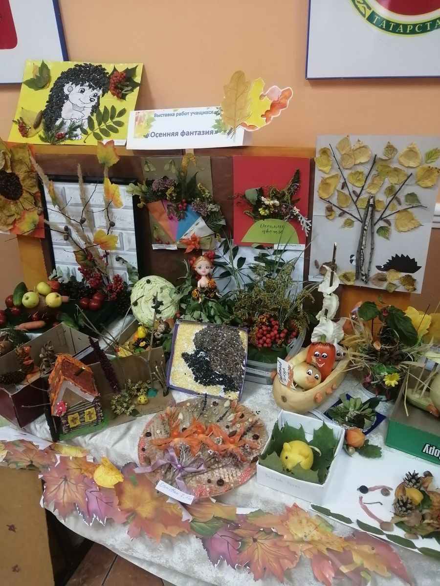 В школе проходит выставка поделок учащихся из осенних материалов и овощей. В выставке приняли участие ученики 1-2 классов.