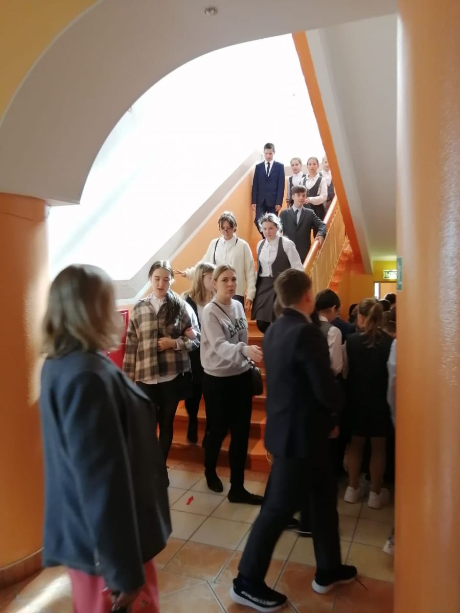 6 сентября 2022 года 9.30 прошла учебно тренировочная эвакуация в школе.Эвакуированы все классы.Благодаря организованности администрации школы и педагогического состава всё прошло успешно.