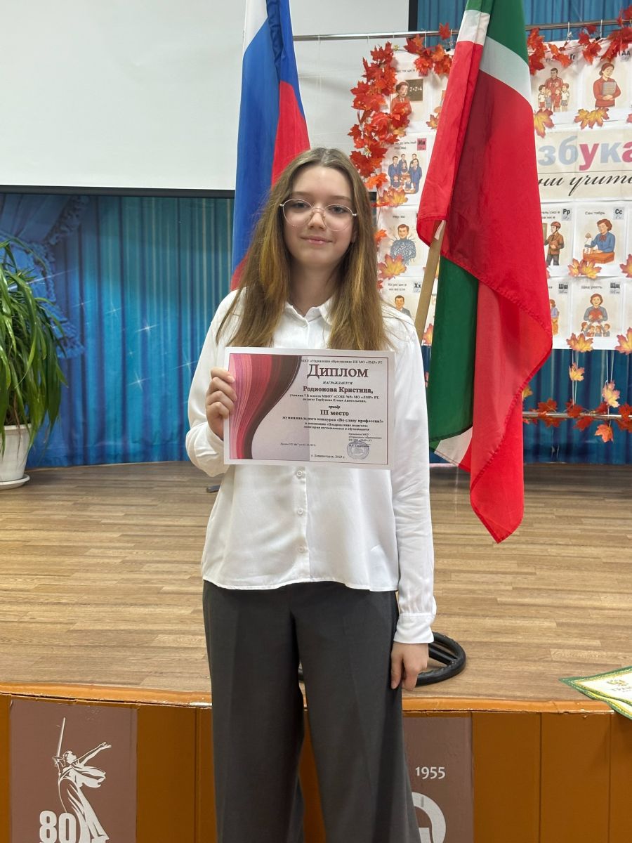 Поздравляем призеров школьного этапа Всероссийской и республиканской олимпиад школьников по истории Татарстана и татарского народа:Петрову Е., ученицу 10 класса, Панишеву А., ученицу 9 класса, Гумерова С., ученика 8 класса, Кондратьева Г., ученика 8 класса, Есипова М., ученика 8 класса,Илюхина К., ученика 8 класса (учитель Аюпова З.А.)