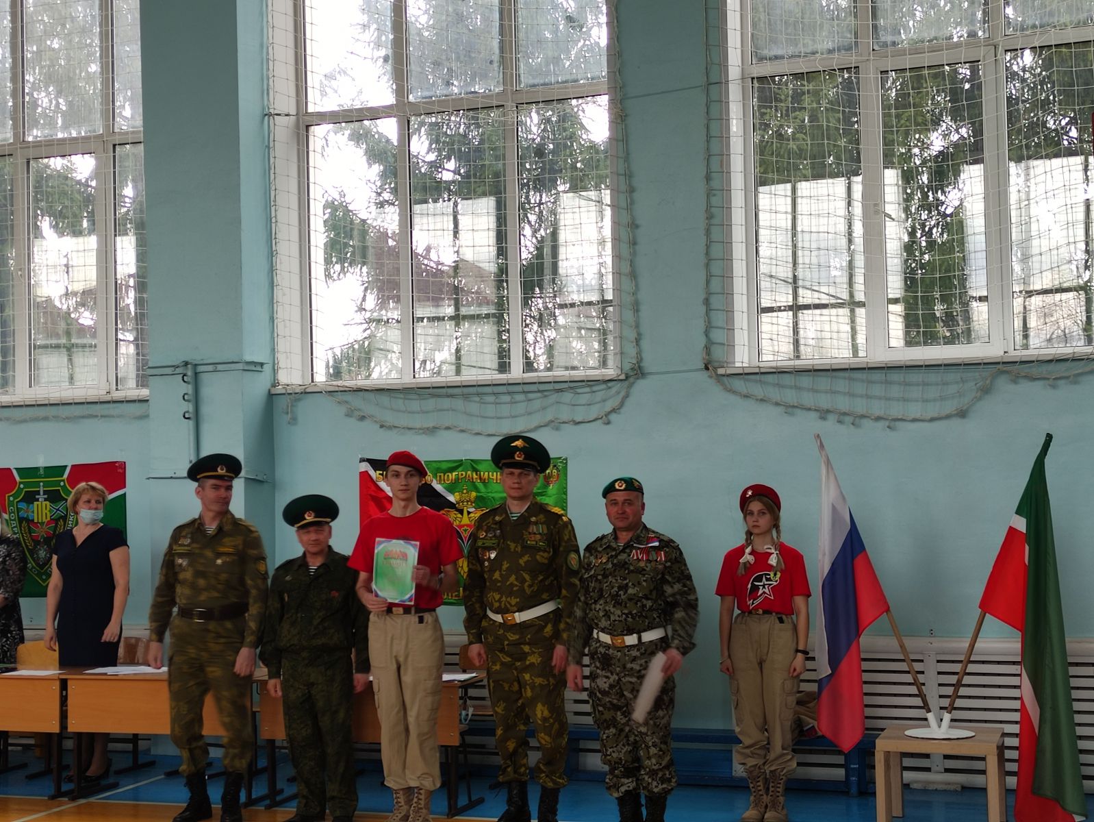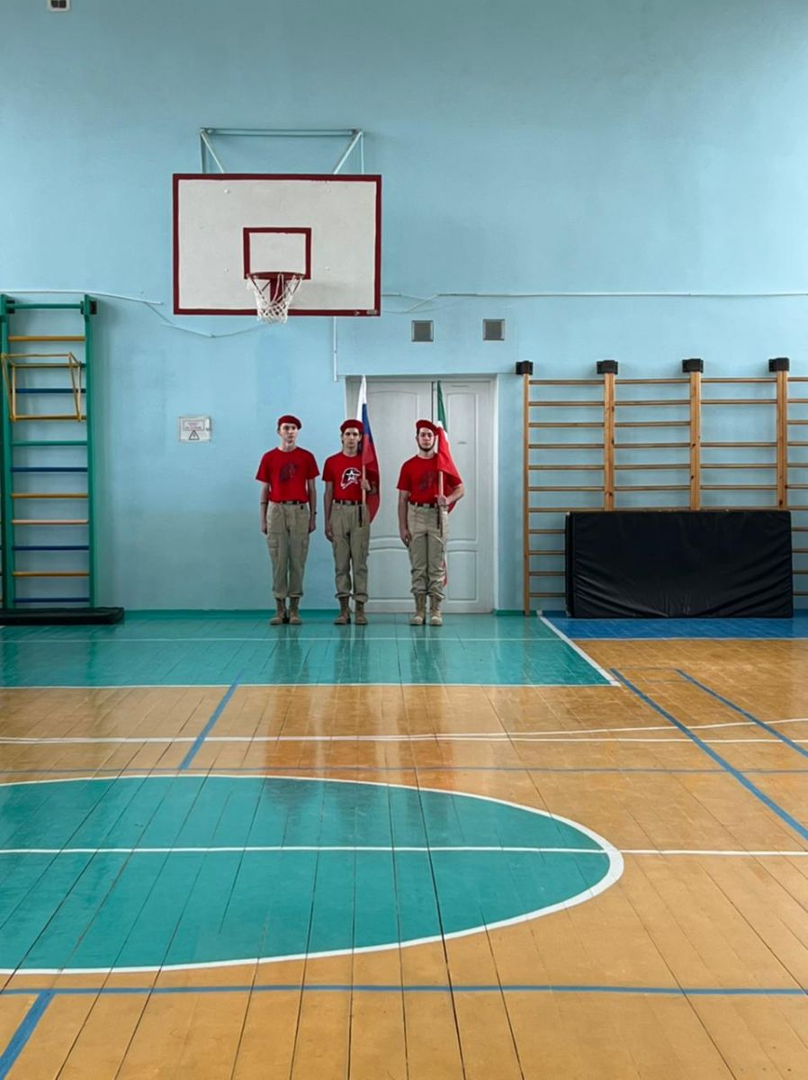Право вынести флаги Российской Федерации и Республики Татарстан в школе на торжественной линейке, предоставилось членам отряда «Юнармии»: Гимаеву Р., Несполо А. и Антипову Ф.