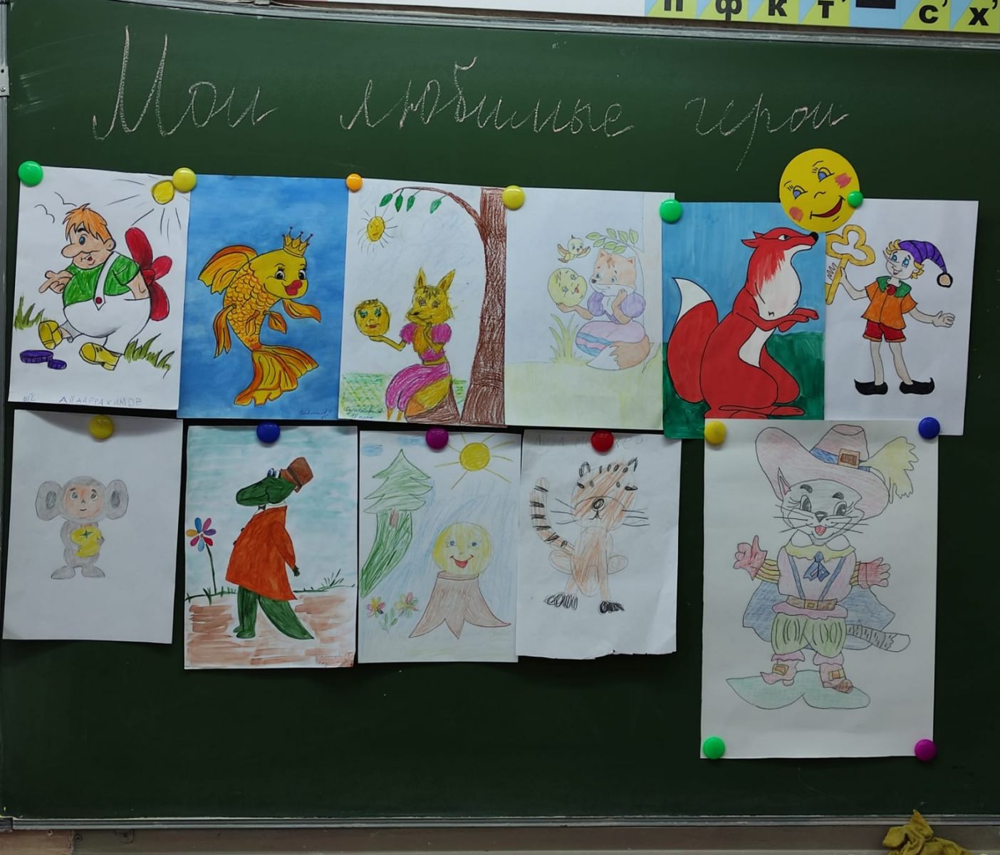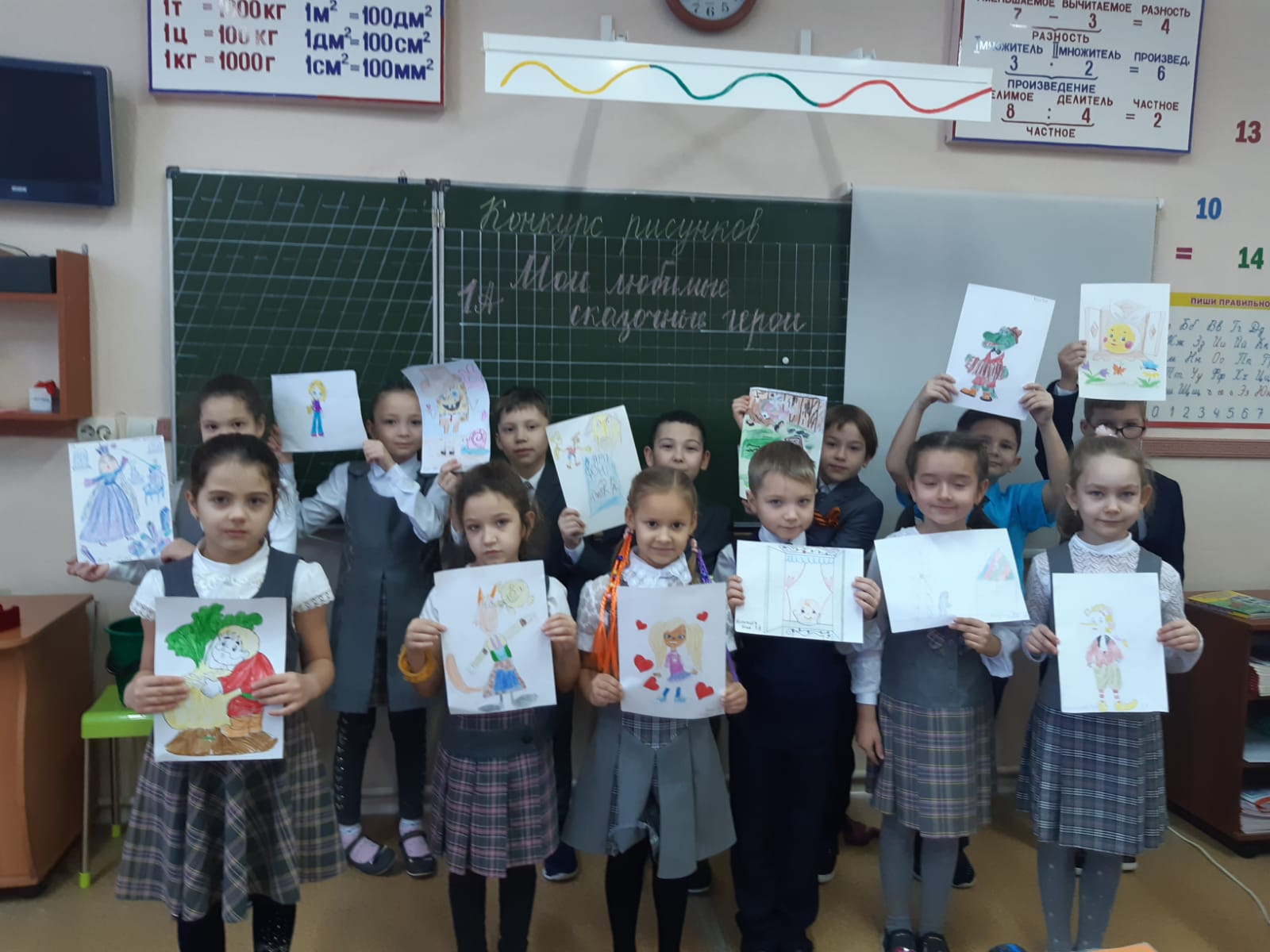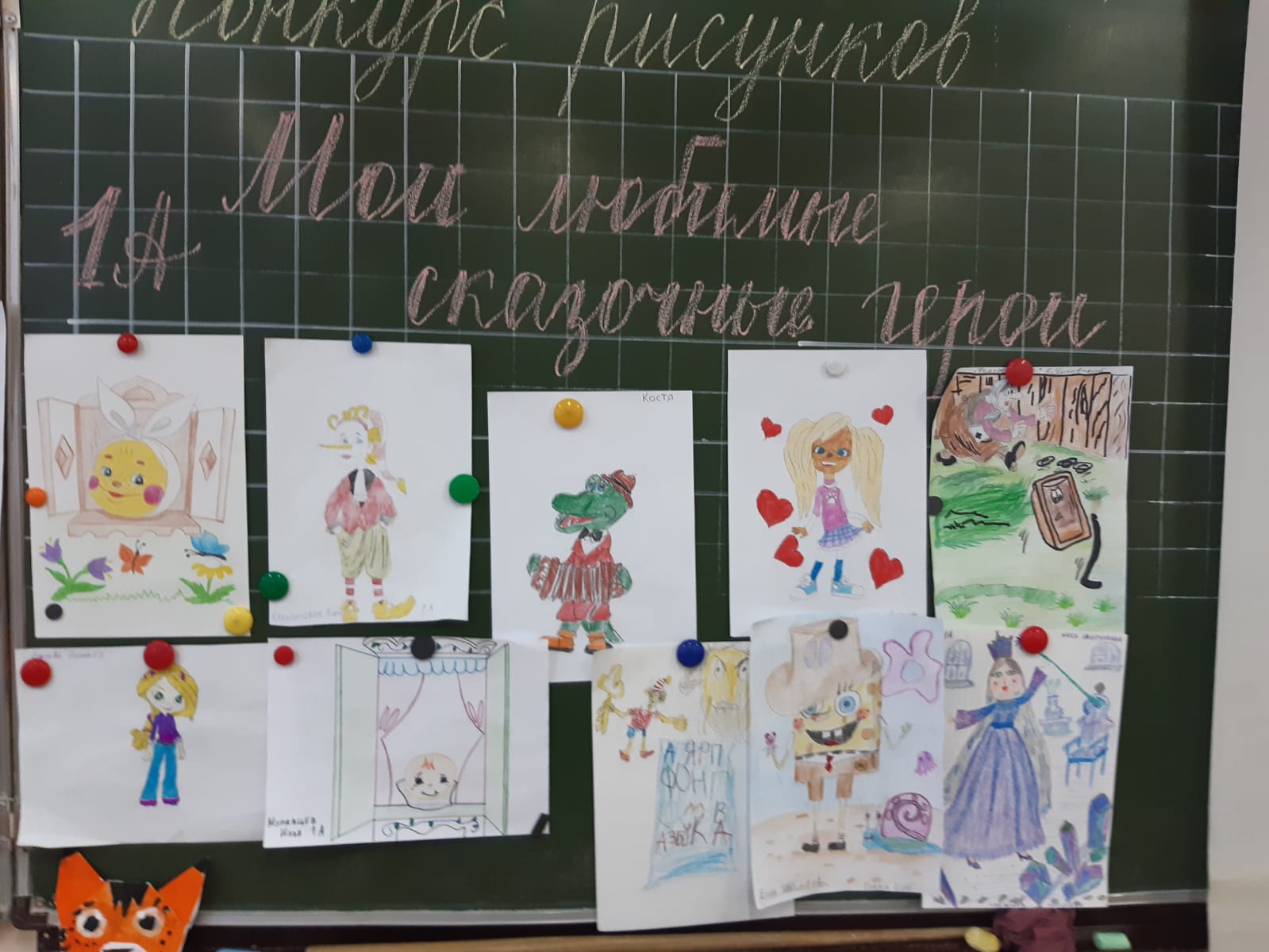В день литературного чтения учащиеся 1 А класса приняли участие в викторине и конкурсе рисунков "Любимые сказочные герои"
