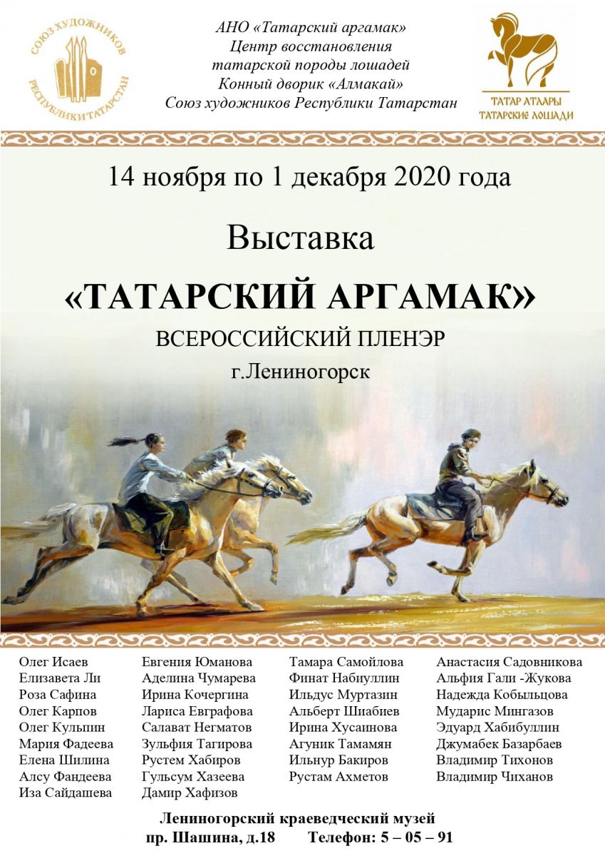Выставка «Татарский аргамак» — результат пленэра, который должен был пройти в Лениногорском районе. Из-за эпидемиологической ситуации его пришлось перенести в онлайн-формат. Художники из России и Татарстана представят свои работы, посвящённые лошадям. В списке участников — 6 представителей нашего города. Киргизский художник Джумабек Базарбаев лично посетил конный дворик Алмакай и написал свои картины там. На выставке можно увидеть 13 его работ.