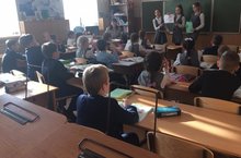 Накануне Дня родного языка учащиеся 8А класса подготовили и провели лингвистические пятиминутки для учащихся начальных классов «Знатоки русского языка». Младшие школьники проявили свои знания в орфографии, показали свой богатый словарный запас, отгадывая ребусы, загадки, фразеологизмы. Руководитель - О.П. Бострикова.