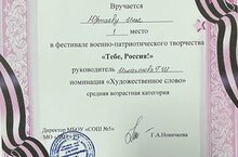 24 февраля в нашей школе прошел фестиваль военно-патриотического творчества «Тебе, Россия!» Учащиеся 8А класса Юртаев Илья и Тихонова Елизавета рассказали стихи о войне и заняли призовые места. Молодцы!