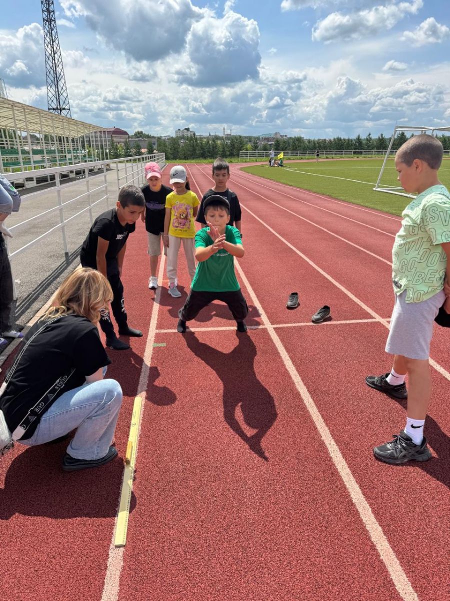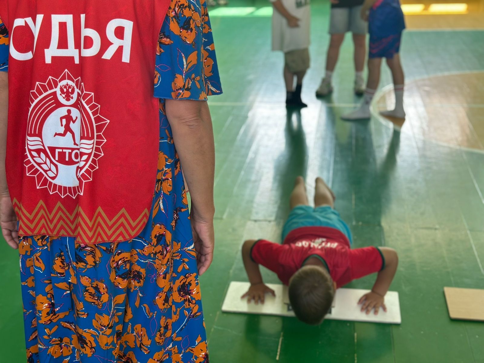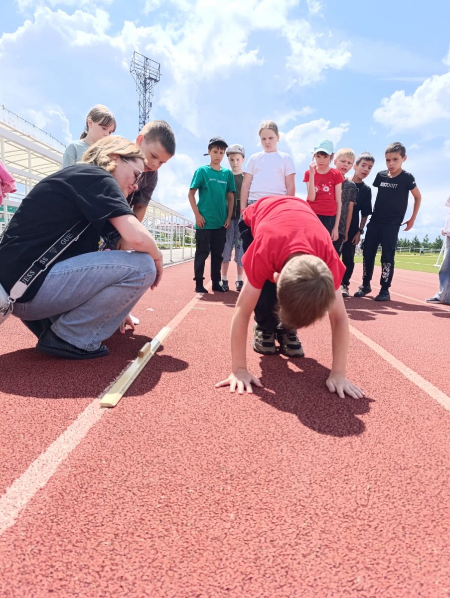 Воспитанники лагеря проходили такие испытания как: прыжок в длину с места толчком двумя ногами, поднимание туловища из положения лежа,челночный бег, бег на 30 метров. Судьи оценивали уровень подготовленности детей и следили за правильностью выполнения испытаний. Все ребята активно принимали участие в тестировании, проходили испытания с большим энтузиазмом и показали хорошие результаты.