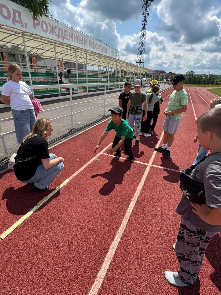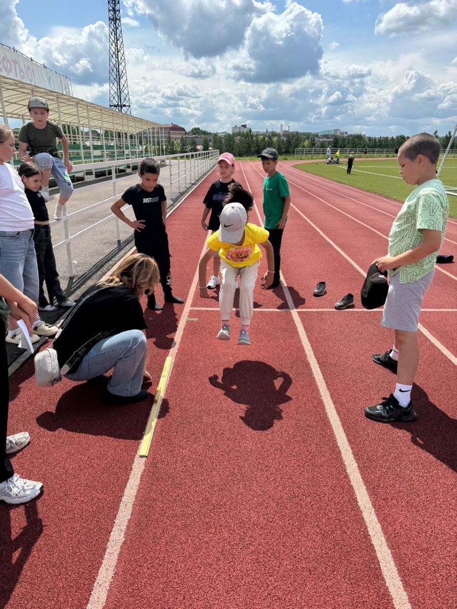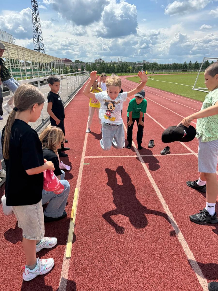 Воспитанники лагеря проходили такие испытания как: прыжок в длину с места толчком двумя ногами, поднимание туловища из положения лежа,челночный бег, бег на 30 метров. Судьи оценивали уровень подготовленности детей и следили за правильностью выполнения испытаний. Все ребята активно принимали участие в тестировании, проходили испытания с большим энтузиазмом и показали хорошие результаты.