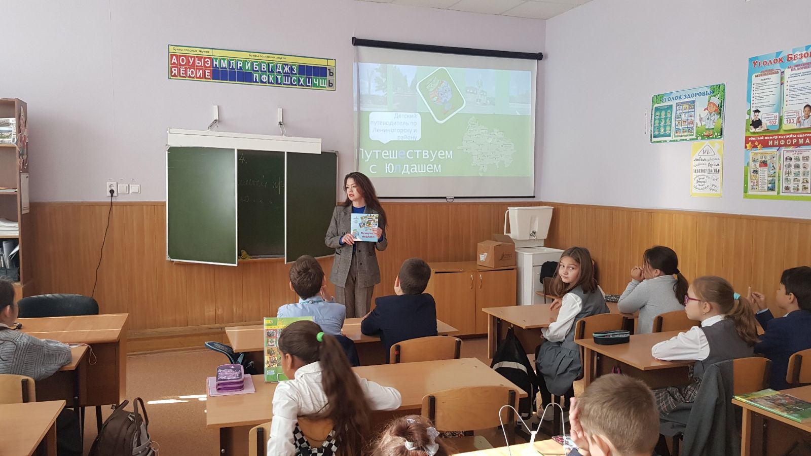 25 сентября в 3 Б классе состоялась встреча с директором Лениногорского краеведческого музея Пермяковой Н.Ю..Ребята узнали о достопримечательностях родного города,легенды и тайны красивых мест. Каждый ученик получил путеводитель,который создан с большой любовью к родному краю.