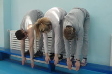 Учащиеся школы с 1 по 11 классы начали сдаать весеннюю сессию ГТО с места на гибкость (наклон вперед).