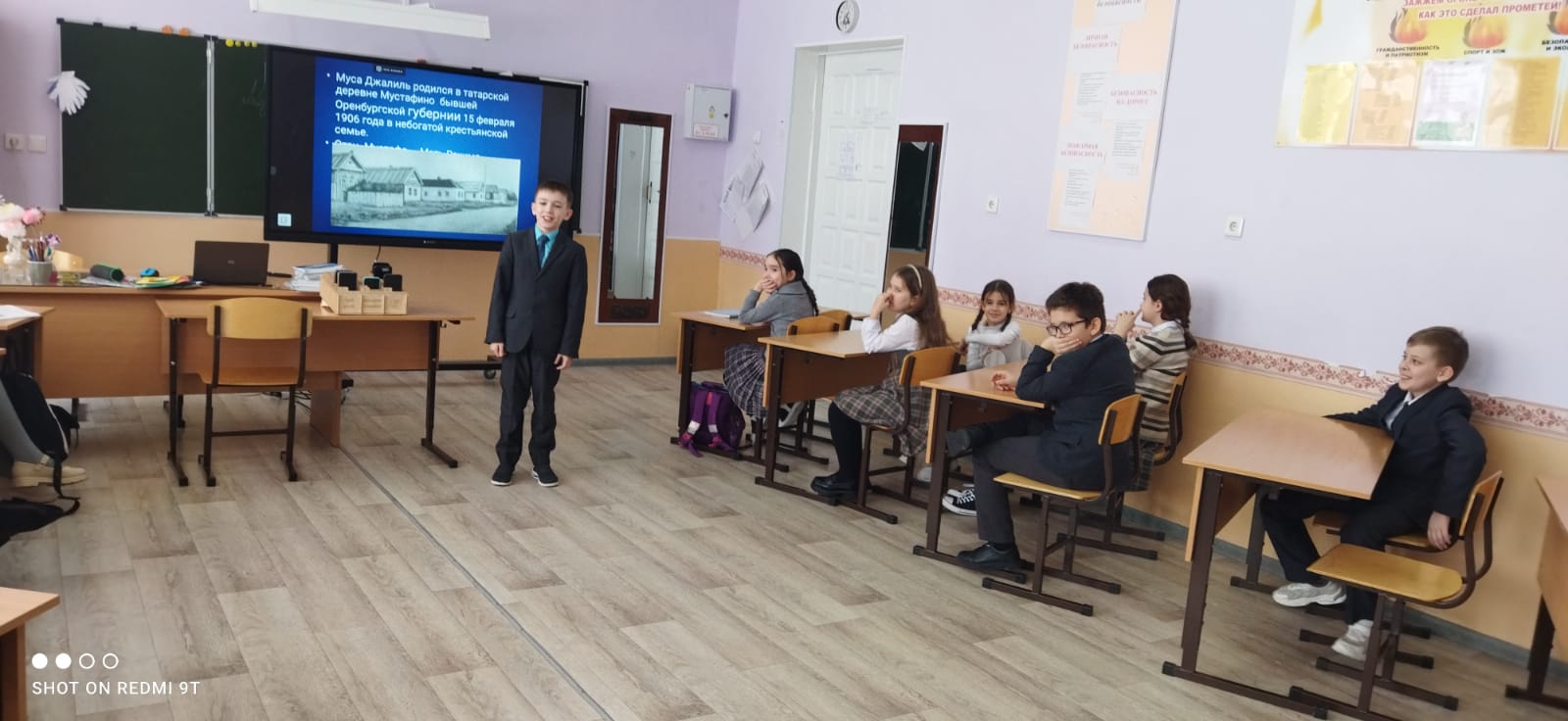 21 февраля отмечается Всемирный день родного языка. Язык каждого народа уникален, знание многих языков расширяет кругозор, способствует более глубокому познанию культуры народов разных национальностей. В рамках месячника военно-патриотического воспитания и Дня родного языка состоялось мероприятие “Муса в наших сердцах”. Учащиеся рассказали стихи Мусы Джалиля, исполнили песни на его стихи.