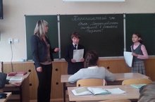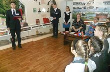 18.11 Экскурсоводы школьного историко-краеведческого музея Демидов А.(11м), Махиянов Д. (11м), Соболева Н. (11м), Стряпунина И.(11м), Щербакова С.(6а),Хаева Я.(6а) провели с учащимися 6А класса (кл.рук. Шамгунова О.Ф.) урок мужества «Никто не забыт - ничто не забыто», посвященный 70-летию Победы в Великой Отечественной войне. На урок была приглашена Вуколова В.Б., пережившая годы войны, блокаду Ленинграда в детском возрасте. Вера Борисовна поделилась своими воспоминаниями, пожелала ребятам успехов в учебе и мирного неба над головой. -