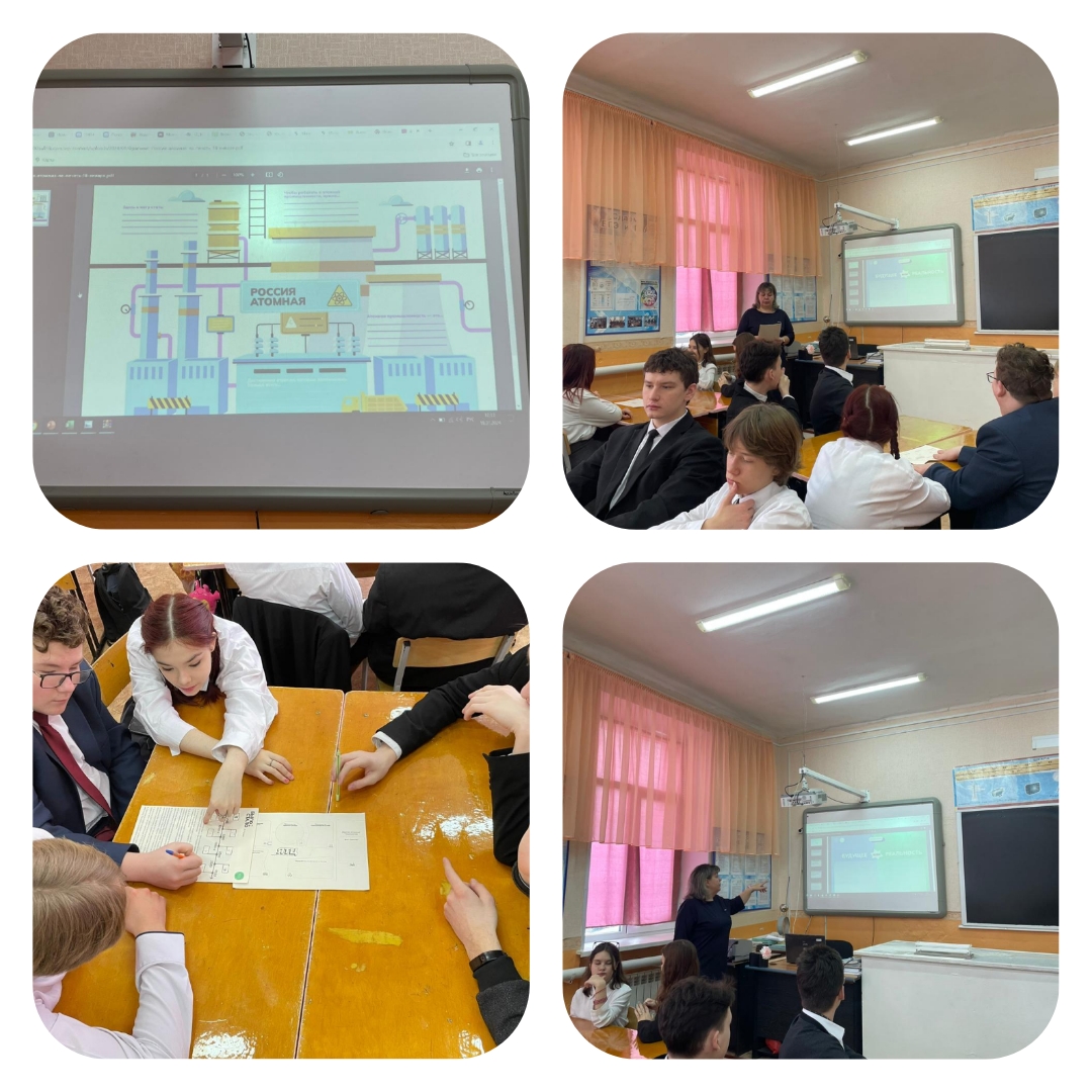 На занятии ребята поработали в группах и узнали много нового о профессиях отрасли, поразмышляли о перспективах дальнейшего развития атомной сферы.