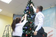 Сегодня в школе украшали новогоднюю елку. По традиции эту работу выполняли выпускники школы.