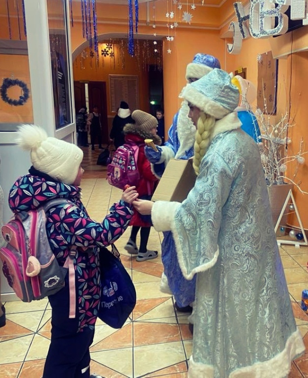 Утро 29 декабря началось с приятной неожиданности: всех работников и учащихся встречали Дед Мороз и Снегурочка, дарили всем новогодние пожелания и сладости. Пусть все пожелания сбудутся в наступающем юбилейном для нашей школы году!