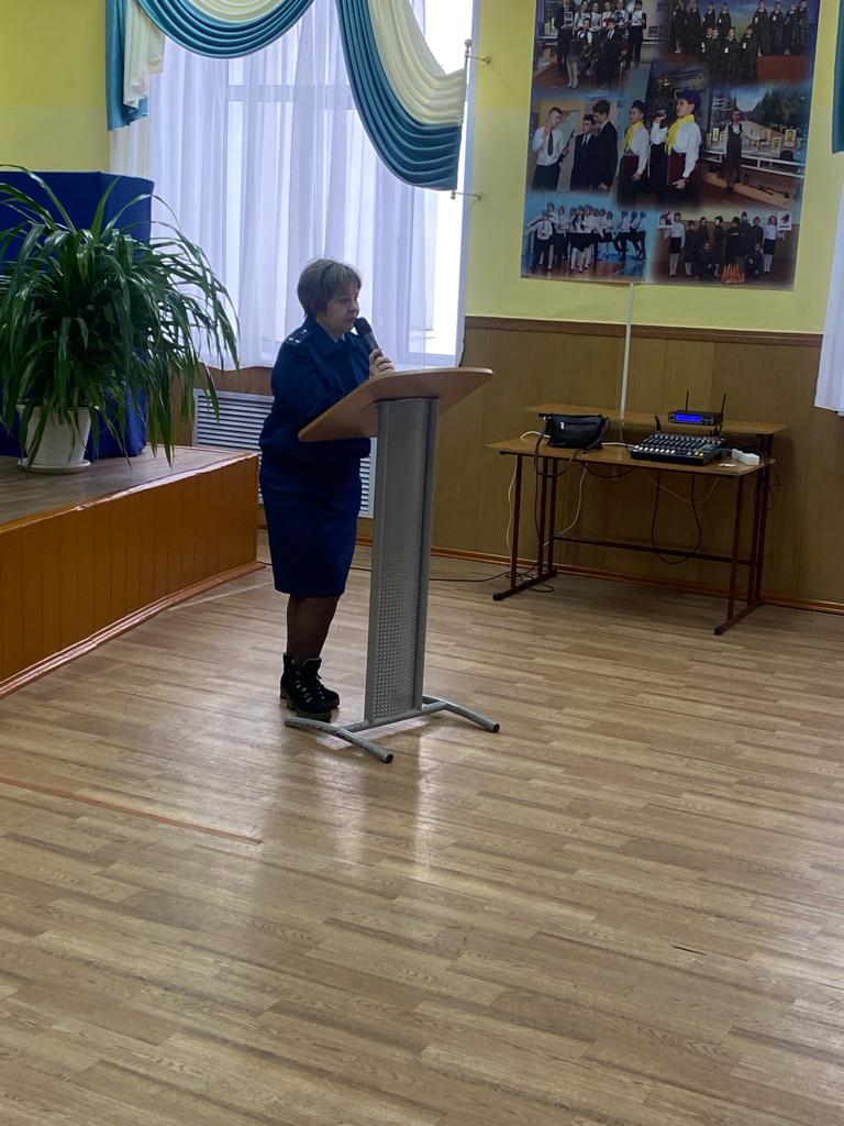 1 декабря состоялась встреча учащихся 8,9,10 классов школы с помощником прокурора г. Лениногорска Сулеймановой Людмилой Николаевной. Людмила Николаевна рассказала учащимся об ответственности за совершение противоправных действий подростками, о том, к чему может привести участие подростков в неформальных группах деструктивной направленности; ответила на вопросы учителей и учащихся.
