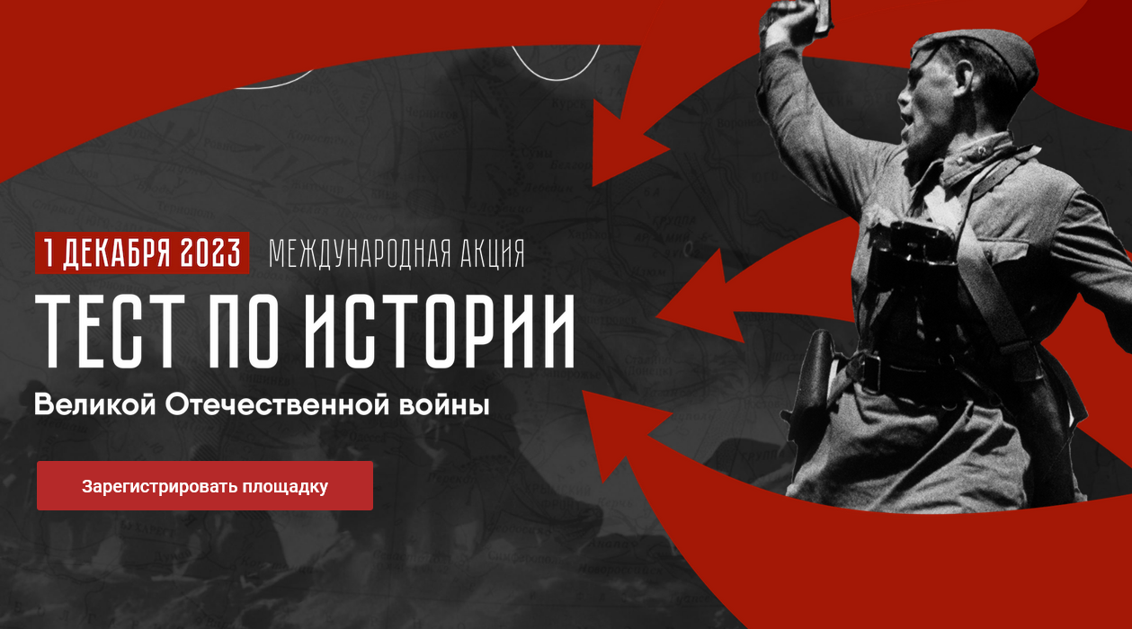 Накануне Дня Неизвестного Солдата проходит международная акция «Тест по истории Великой Отечественной войны» 1 декабря 2023 года. Тест проводится с 2015 года и совокупный информационный охват уже составил более 50 млн. человек.