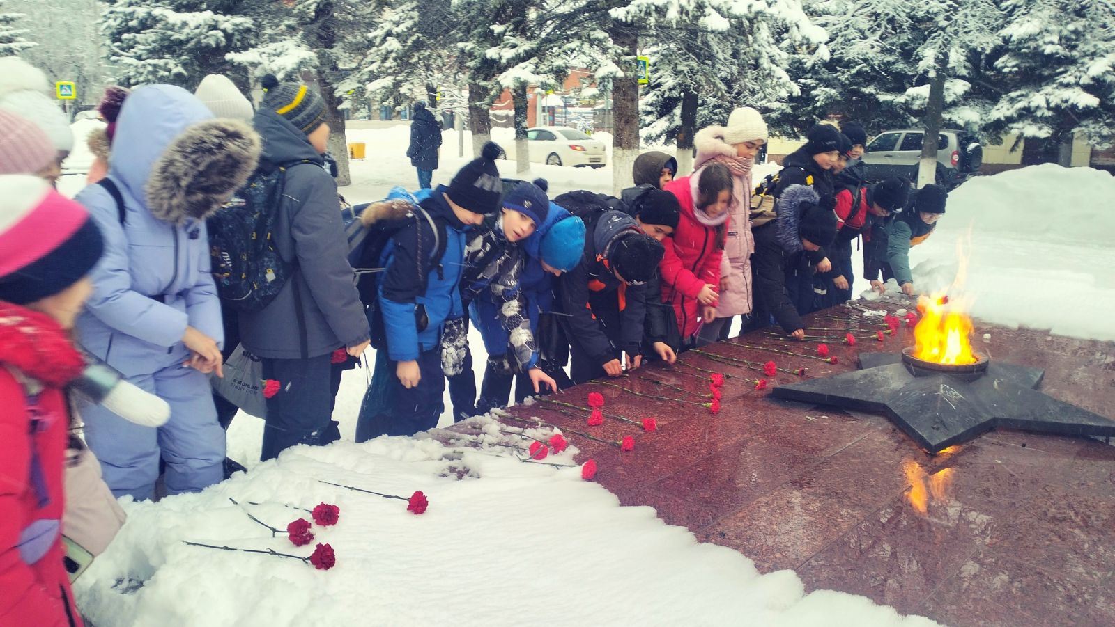 на территории страны или за её пределами. В преддверии этой даты отряд ЮнАрмии, учащиеся 9Б и 5А класса, возложили живые цветы к Вечному огню и поклонились солдатам, погибшим в Великой Отечественной войне. отдав дань уважения всем солдатам, не вернувшимся с войны.