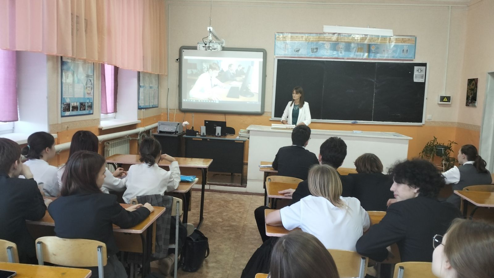 Сегодня была организована встреча учащихся 9 А и 9б классов с ветераном педагогического труда, учителем математики школы №5 - Мухаметзяновой Нурией Лотфулловной, которая закончила школу №5 и вернулась в её стены в качестве учителя и проработала до 2010 года. Ребятам было интересно узнать, как была реализована мечта маленькой девочки, которая еще с детства не могла представить свою жизнь без школы. Она поделилась своими впечатлениями об интересных моментах своей школьной жизни. Акцентировала внимание на важности изучения математики, как царицы наук.