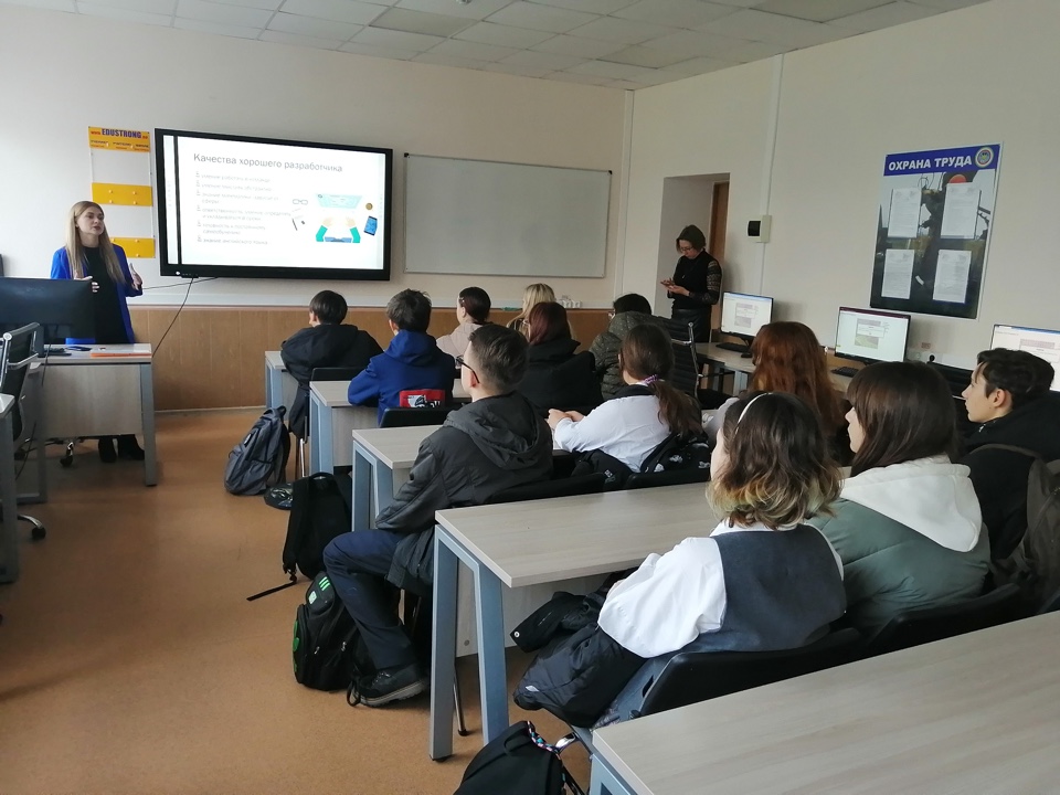 В 7Б прошло очередное занятие по профориентации, на котором ребята познакомились со сферой цифровых технологий. Они узнали, в каких отраслях могут использоваться подобные технологии, какие существуют профессии, связанные с IT-сферой, и, конечно же, какие предметы в школе нужно усиленно изучать, чтобы связать свою жизнь с программированием.