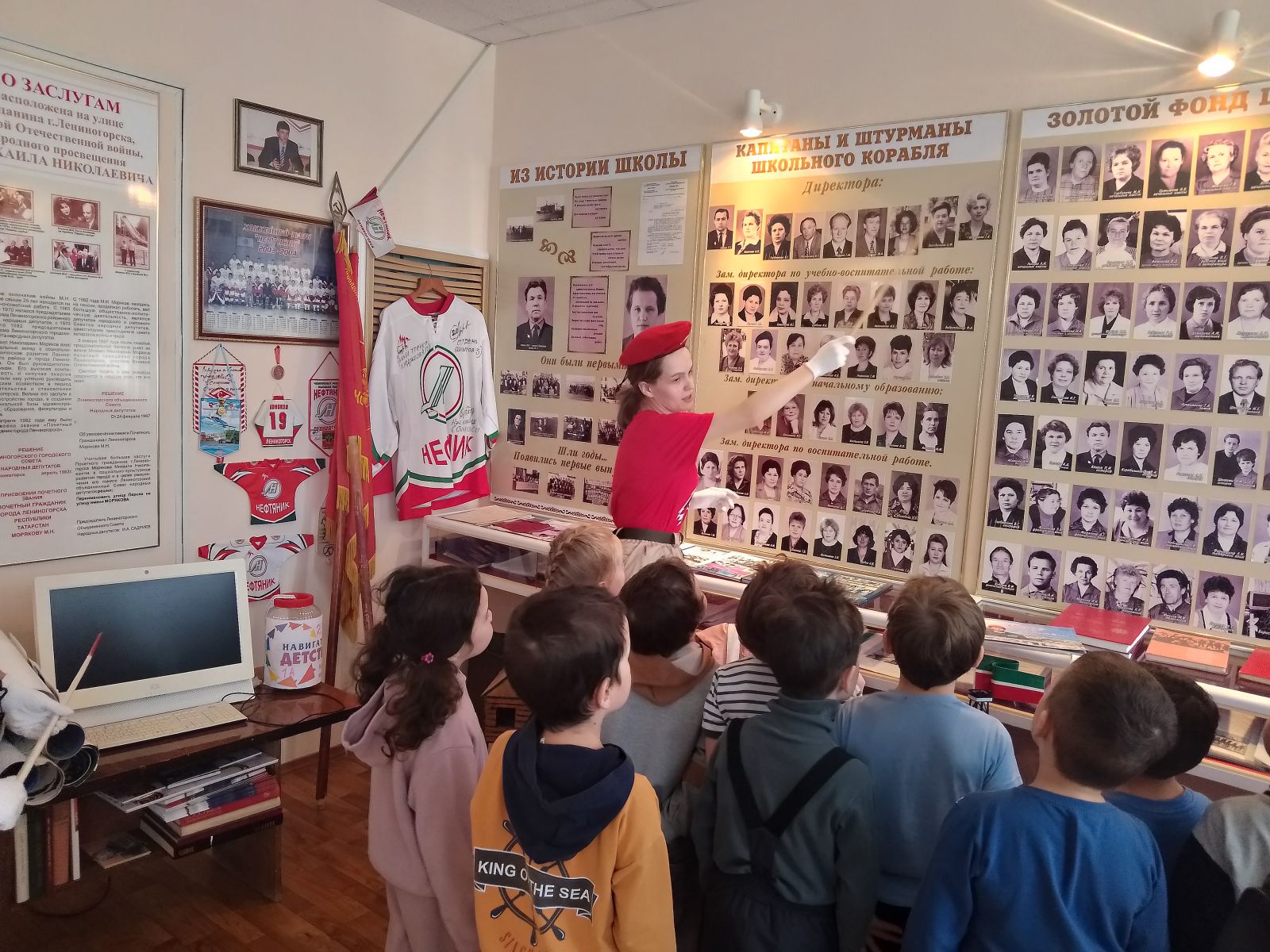 Также для наших гостей представители отряда юнармии провели экскурсию по школьному музею. Ребятам поведали об истории школы, юные посетители увидели, что школа бережно хранит память о тех людях, которые стояли у ее истоков. У стенда боевой славы наши гости услышали фамилии земляков – героев Великой Отечественной войны, узнали о том, что среди первых учителей школы тоже были фронтовики.