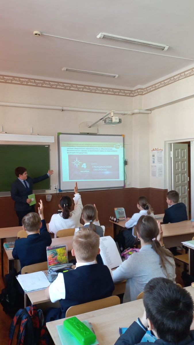 Во 2АБ классе прошел открытый урок по основам безопасности жизнедеятельности, приуроченный ко Дню гражданской обороны. При проведении открытого урока до учащихся доведена информация о создании гражданской обороны, роли и задачах, выполняемых в настоящее время гражданской обороной, как единой системы защиты населения. Также в ходе урока рассказаны правила поведения различного рода в экстремальных и опасных ситуациях, показано видео.