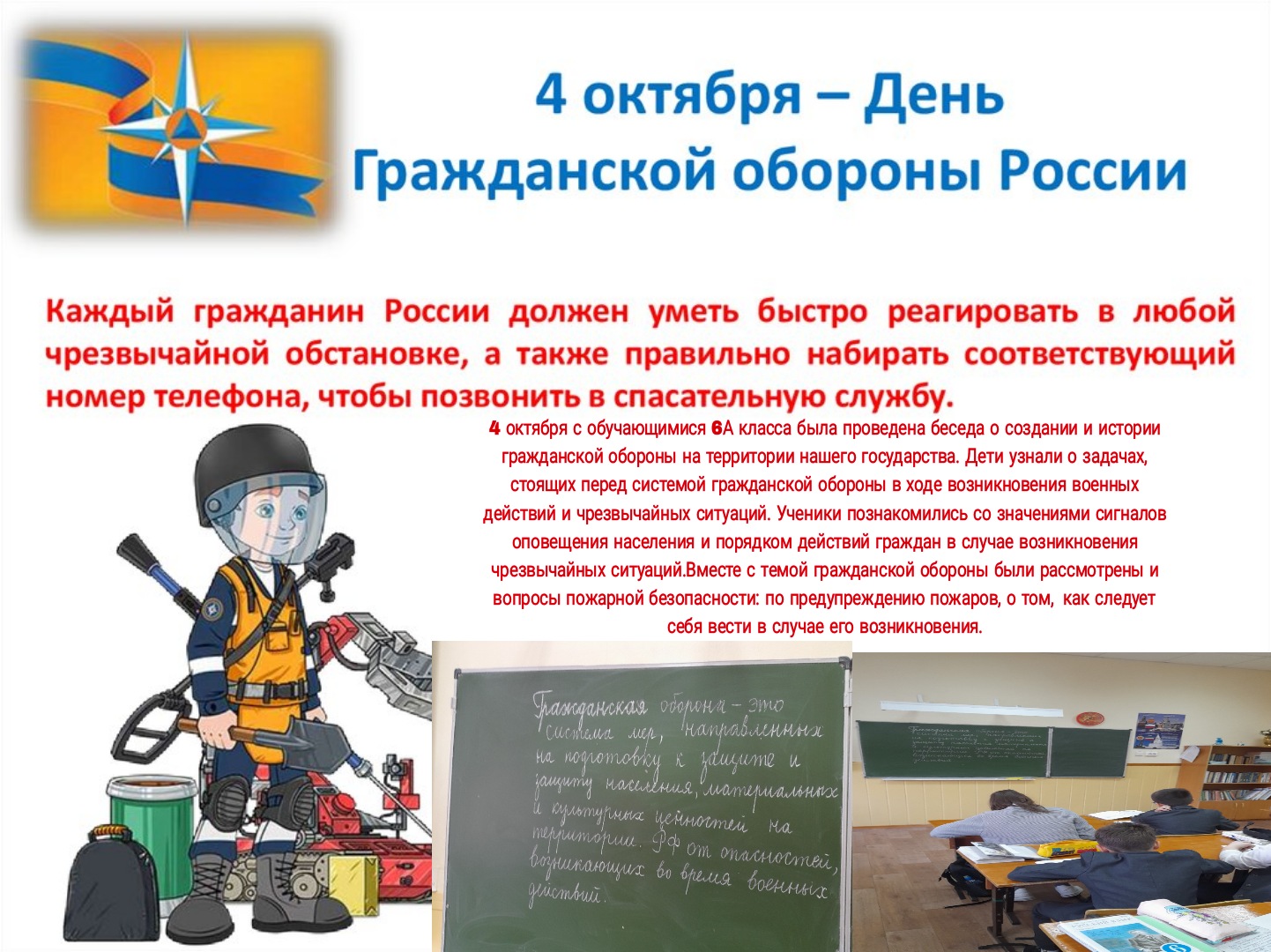 4 октября первым уроком в 6Б классе в рамках единого урока по гражданской обороне состоялось занятие сопровождающееся просмотром презентации